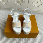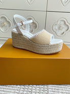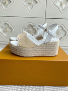 LV Beige·Raffia Straw Wedge Sandals 7.5cm White Lining Leather 291583