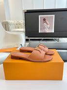 lv capri flat mule brown calfskin