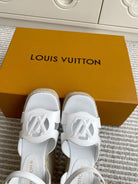 LV Letter Hollow Straw Wedge Sandals 11.5cm White Cowhide 291573