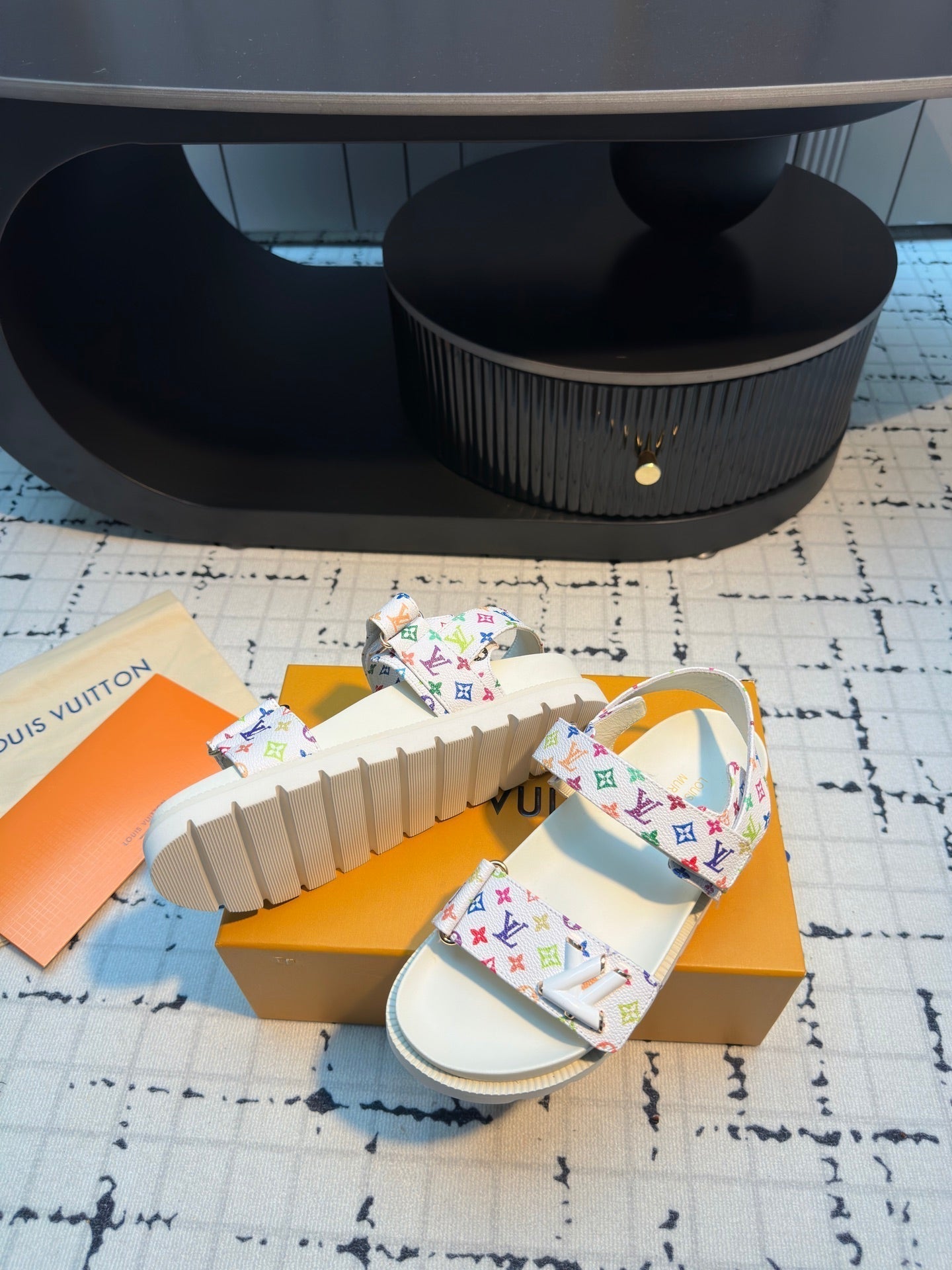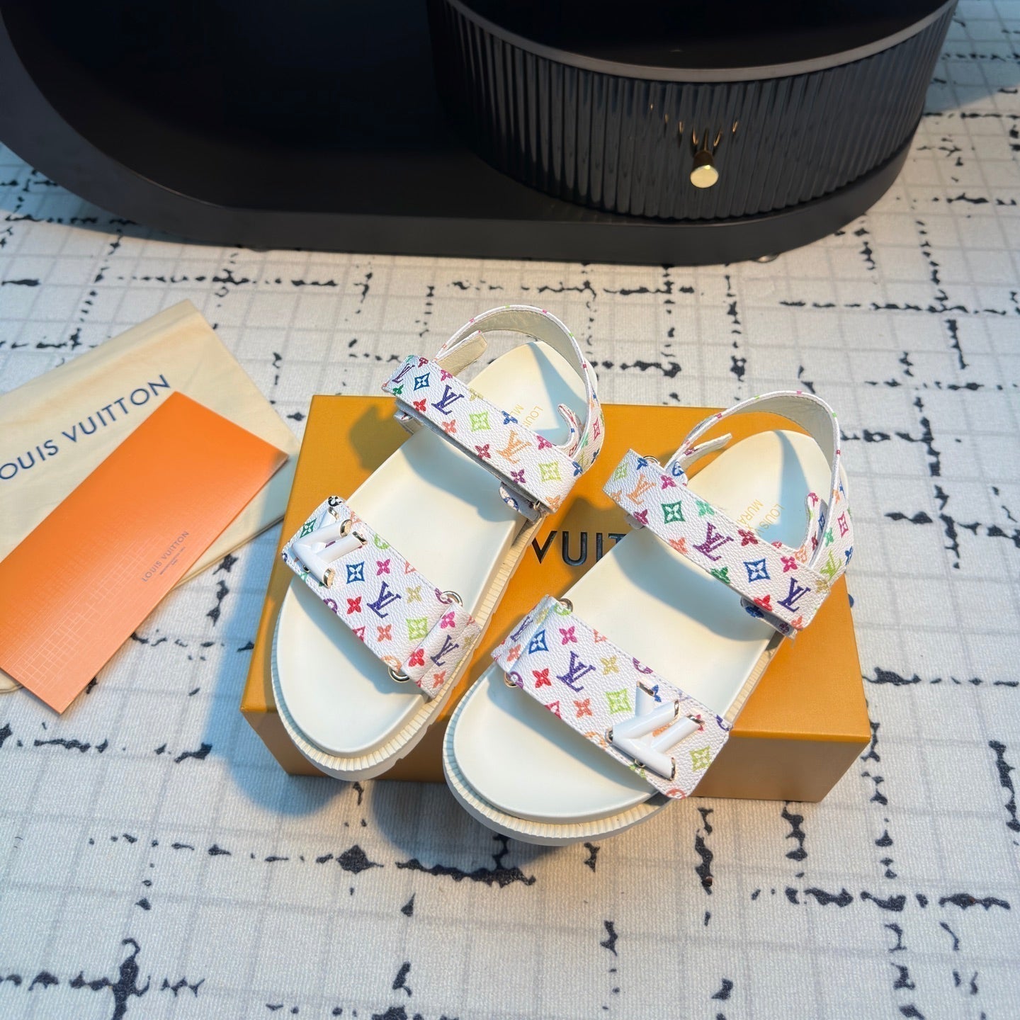 LV LV x TM LV Sunset Flat Comfort Sandal White with Monogram Multicolore Leather 218915