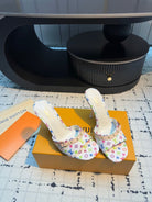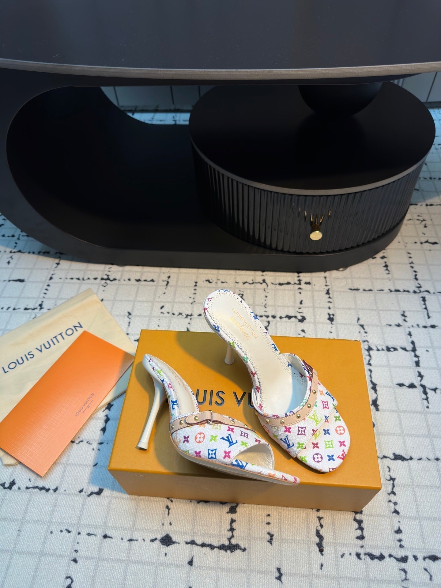 LV Mule 6AM LV x TM 95mm White with Monogram Multicolore Leather 218905