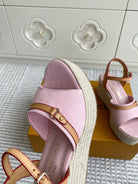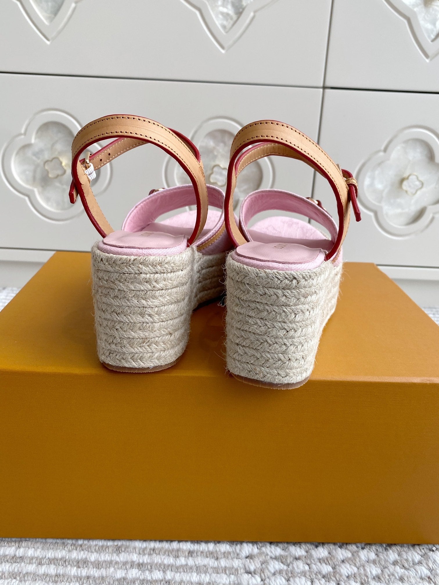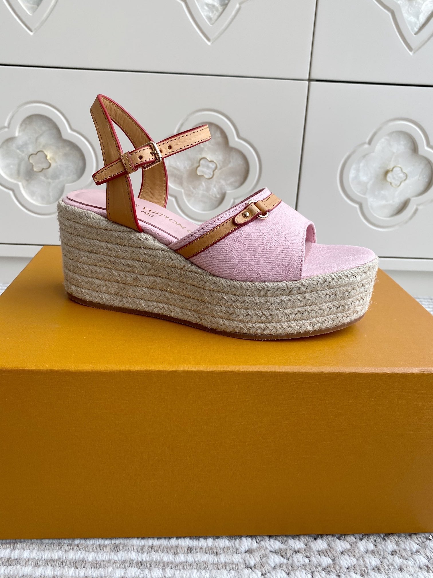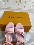 LV Pink Denim Wedge Sandals 7.5cm Pink Sheepskin Lining 291581