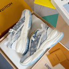 LV Run 55 Sneaker 55mm Light Blue Mix White Monogram Jacquard Fabric
