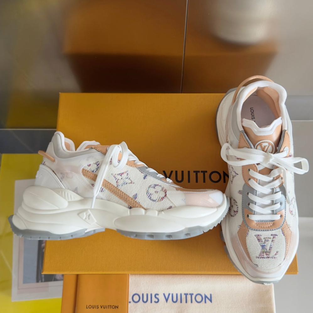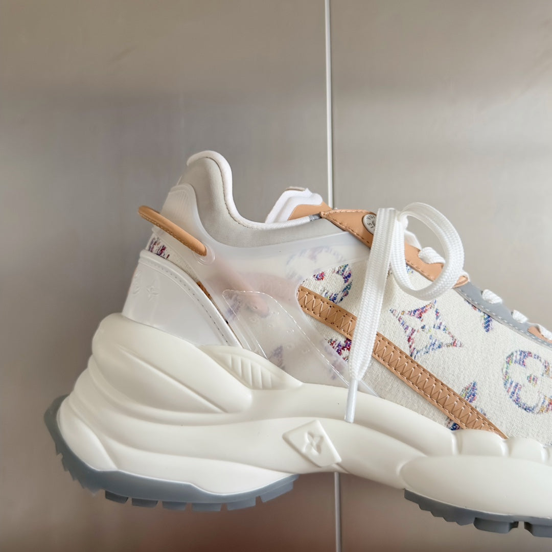 LV Run 55 Sneaker 55mm White Mix Brown Beige Monogram Jacquard Fabric