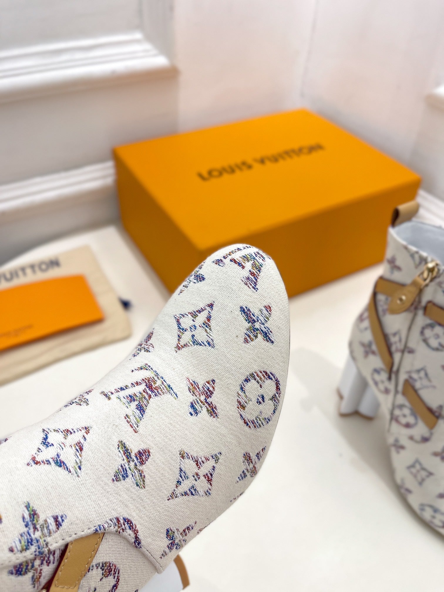 LV Silhouette Ankle Boots 100mm White Monogram Jacquard Fabric