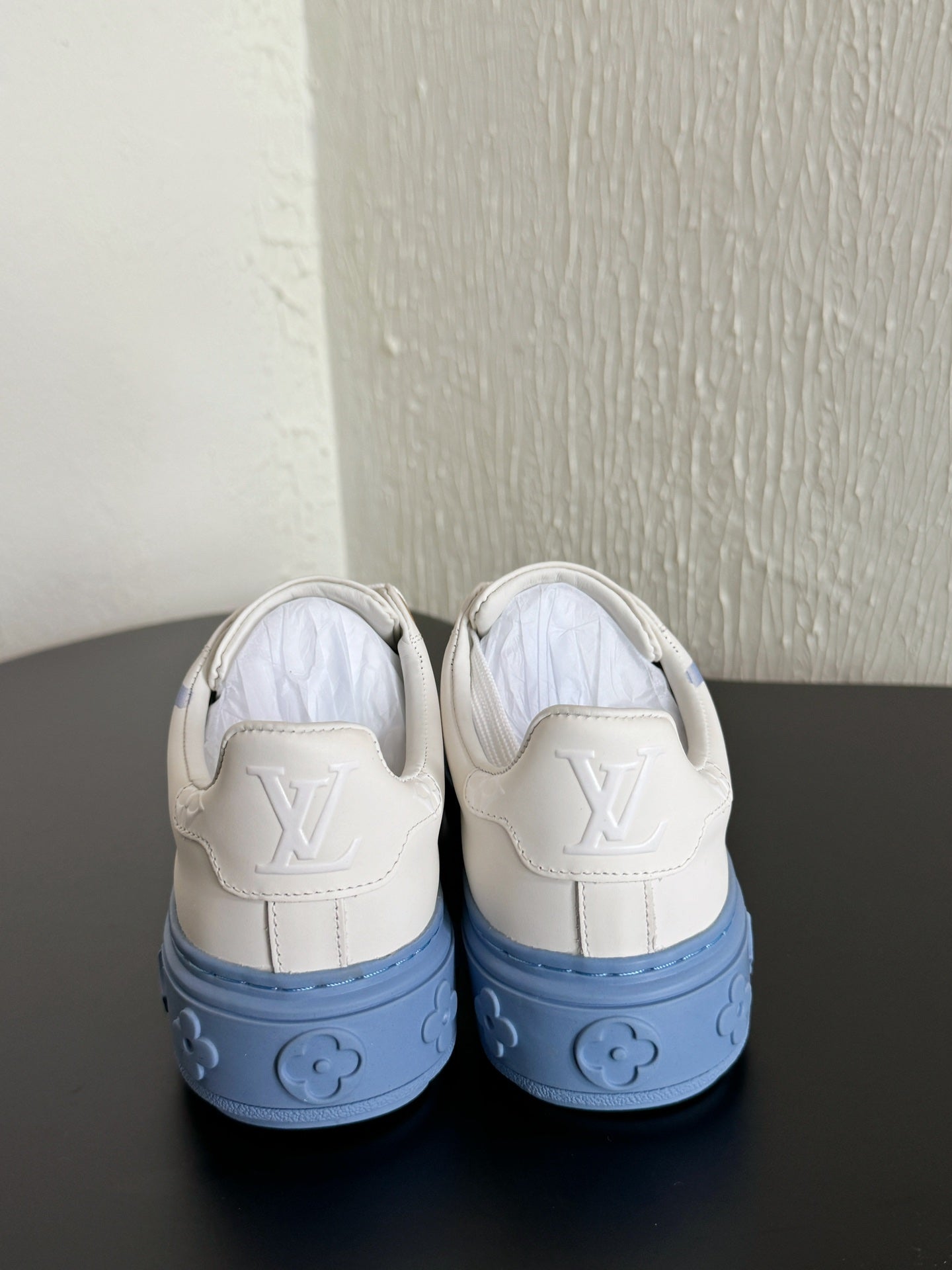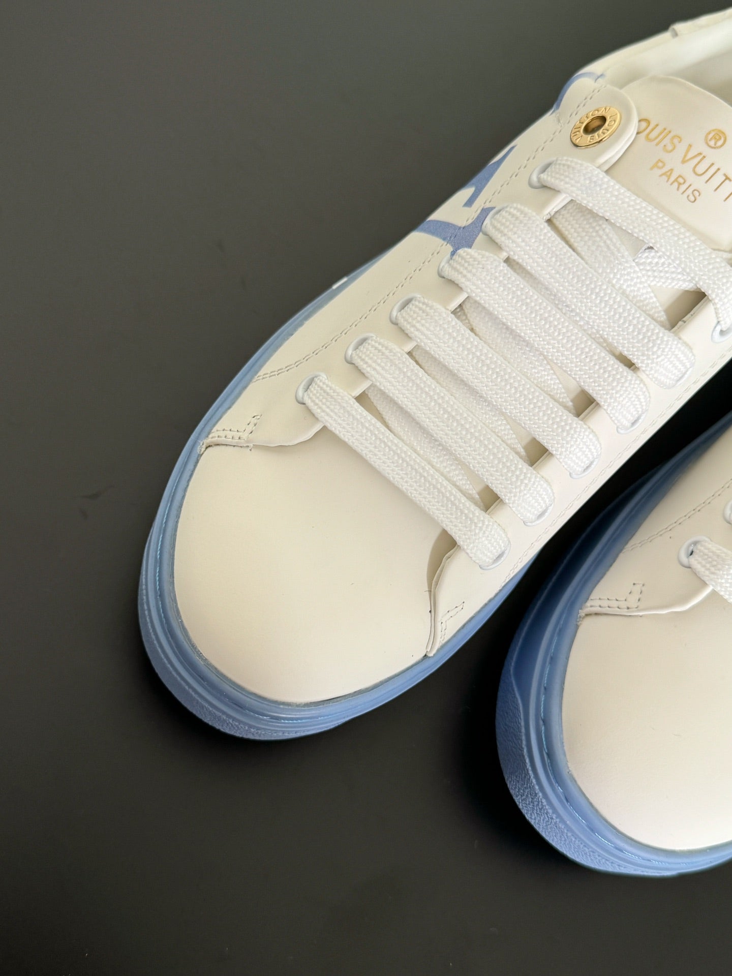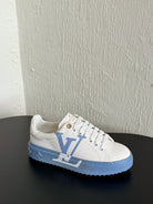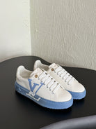 LV Sneakers Time Out Logo Print White Mix Light Blue Calfskin
