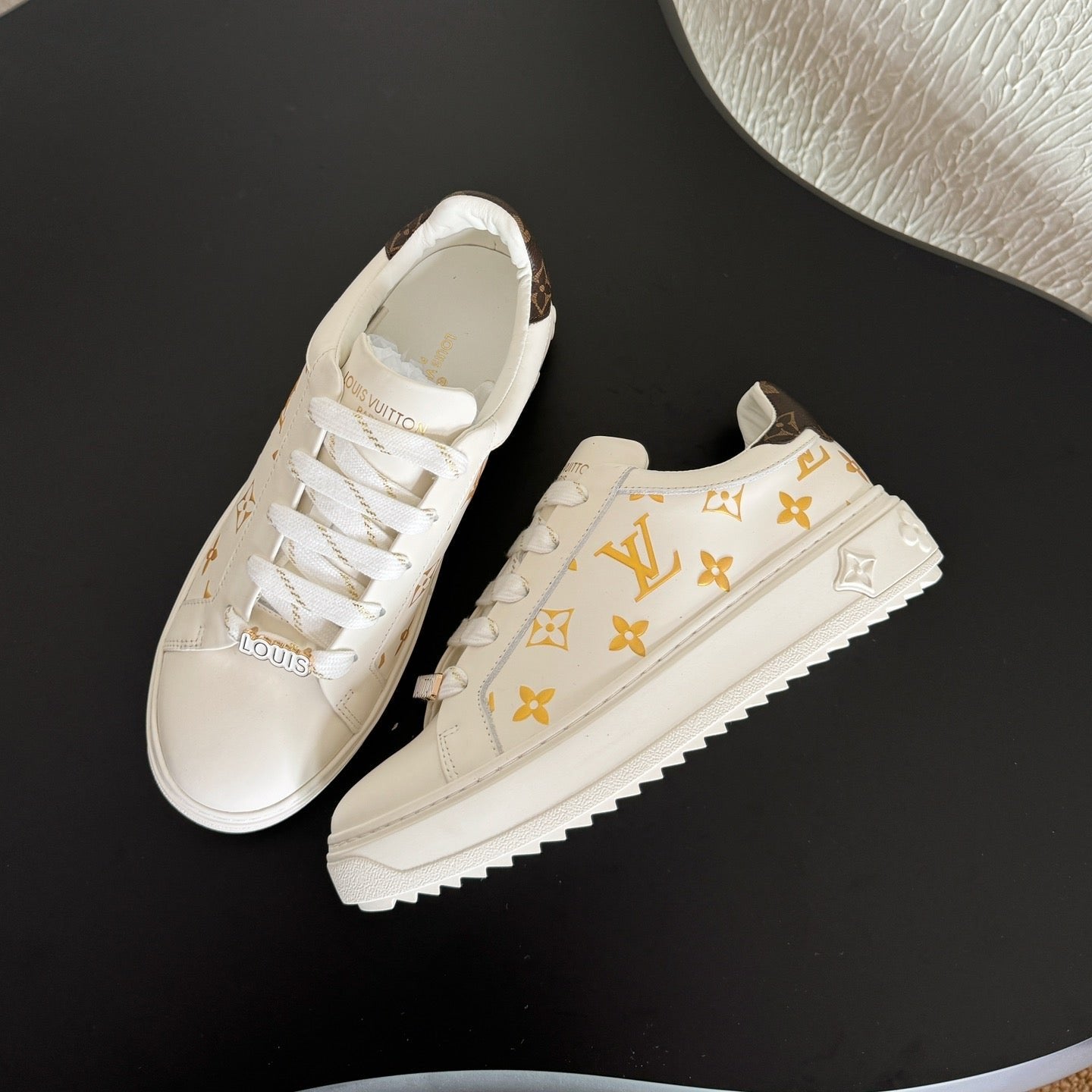 - Color: White Shoes Gold Monogram