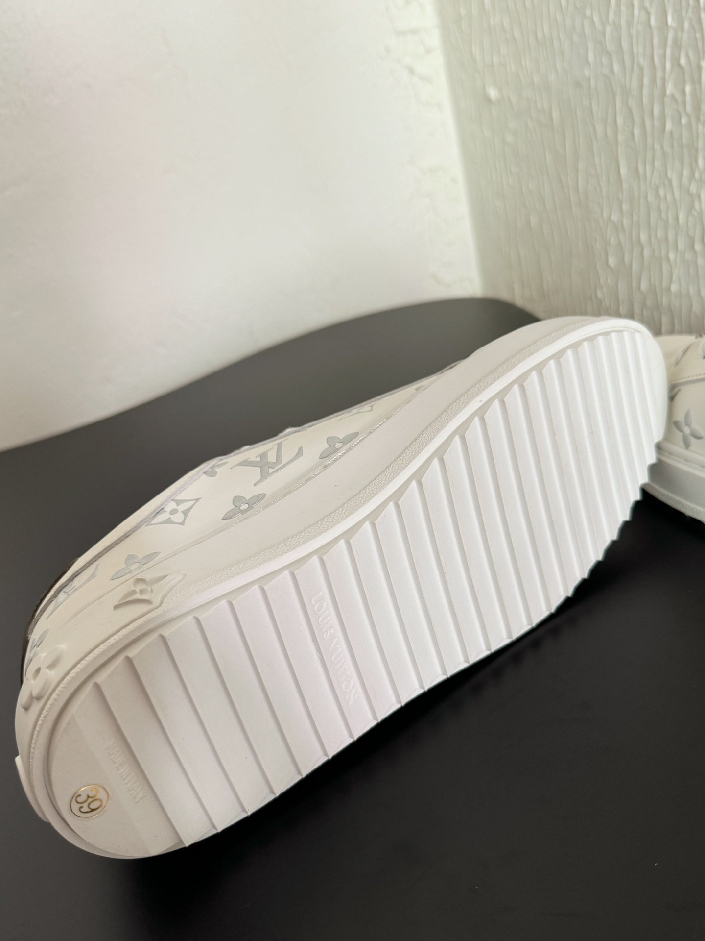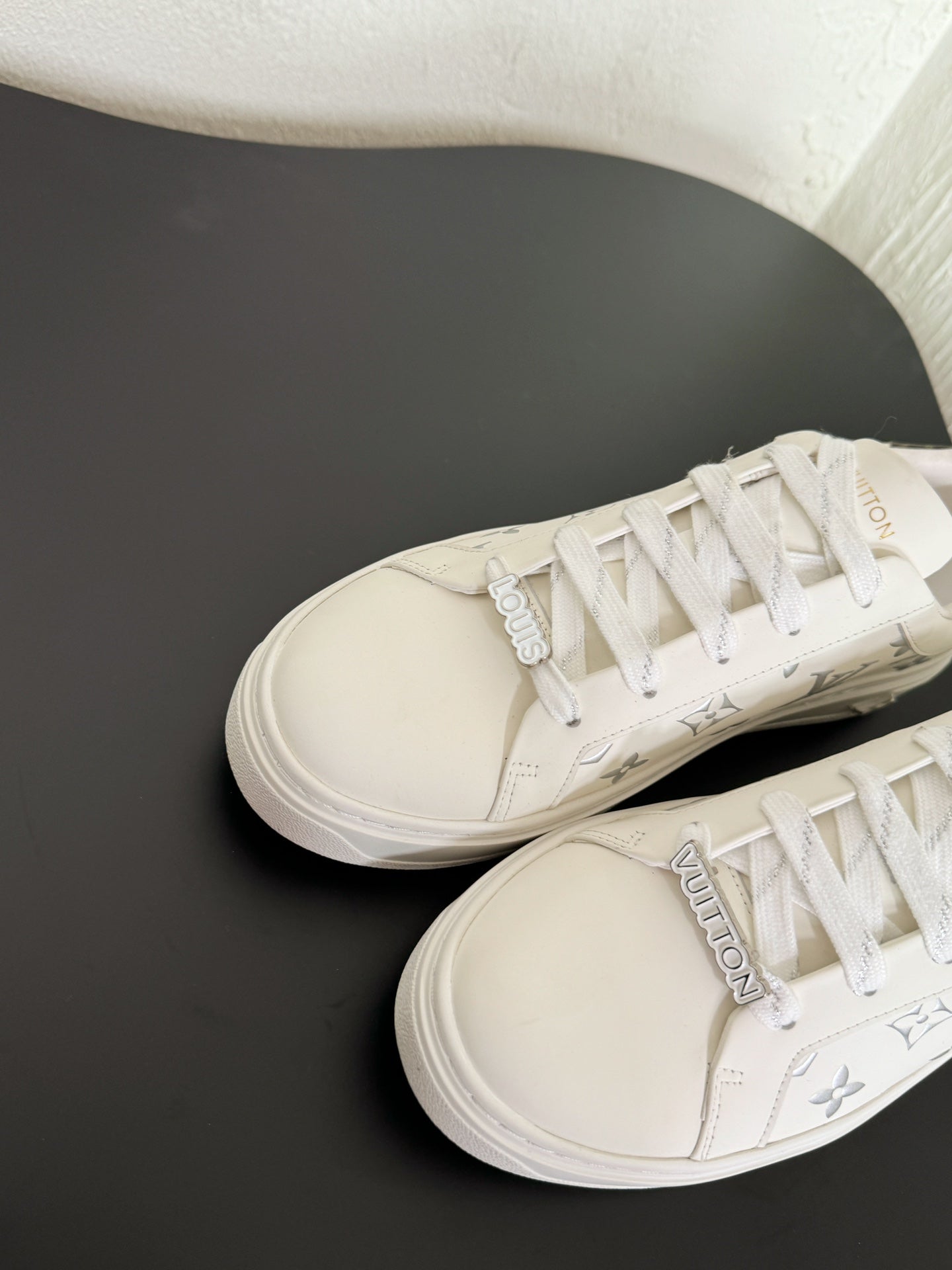 LV Sneakers Time Out White Silver Monogram Calfskin