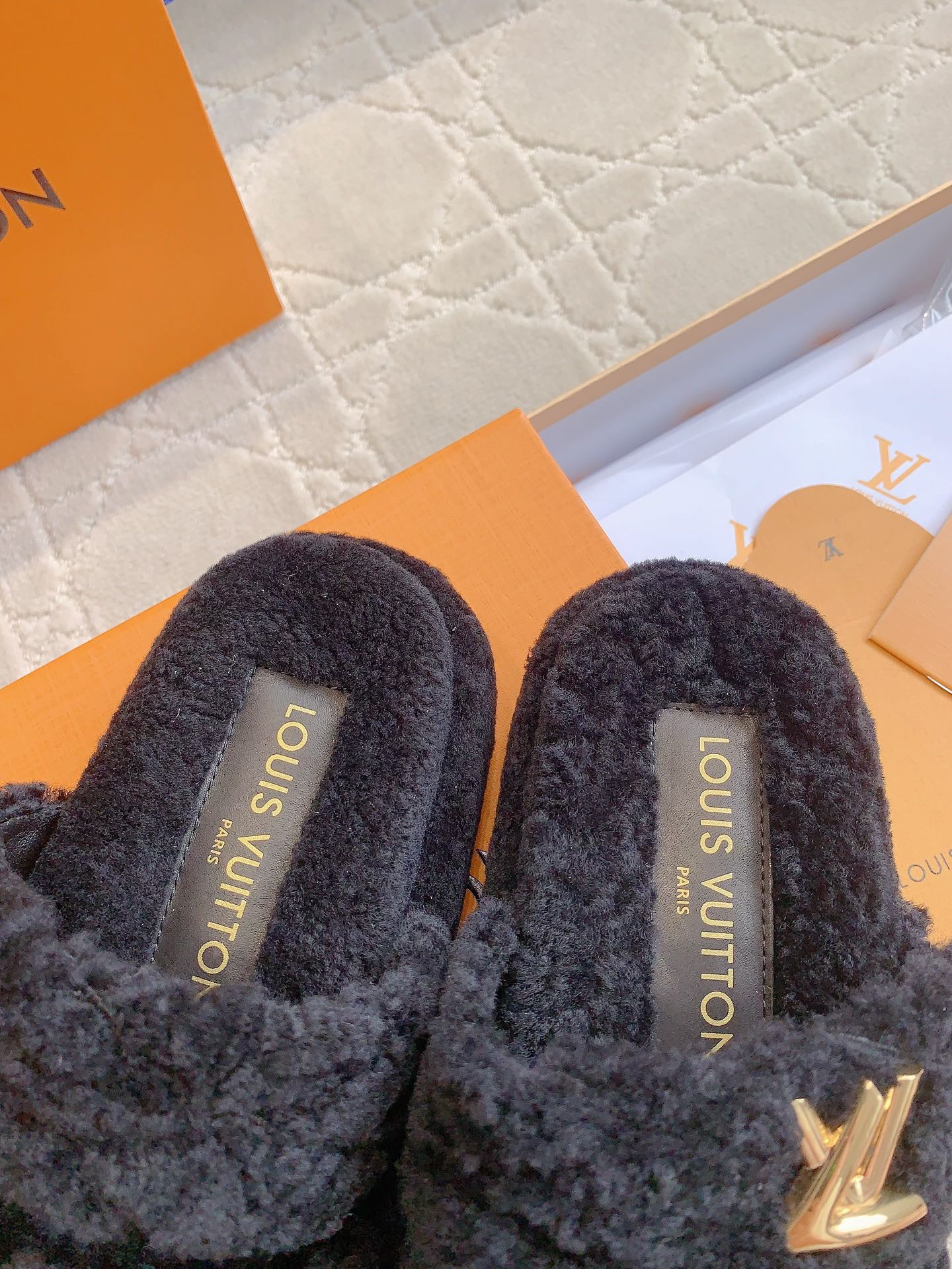 LV Sunset Platform Comfort Mule Black Gray Wool