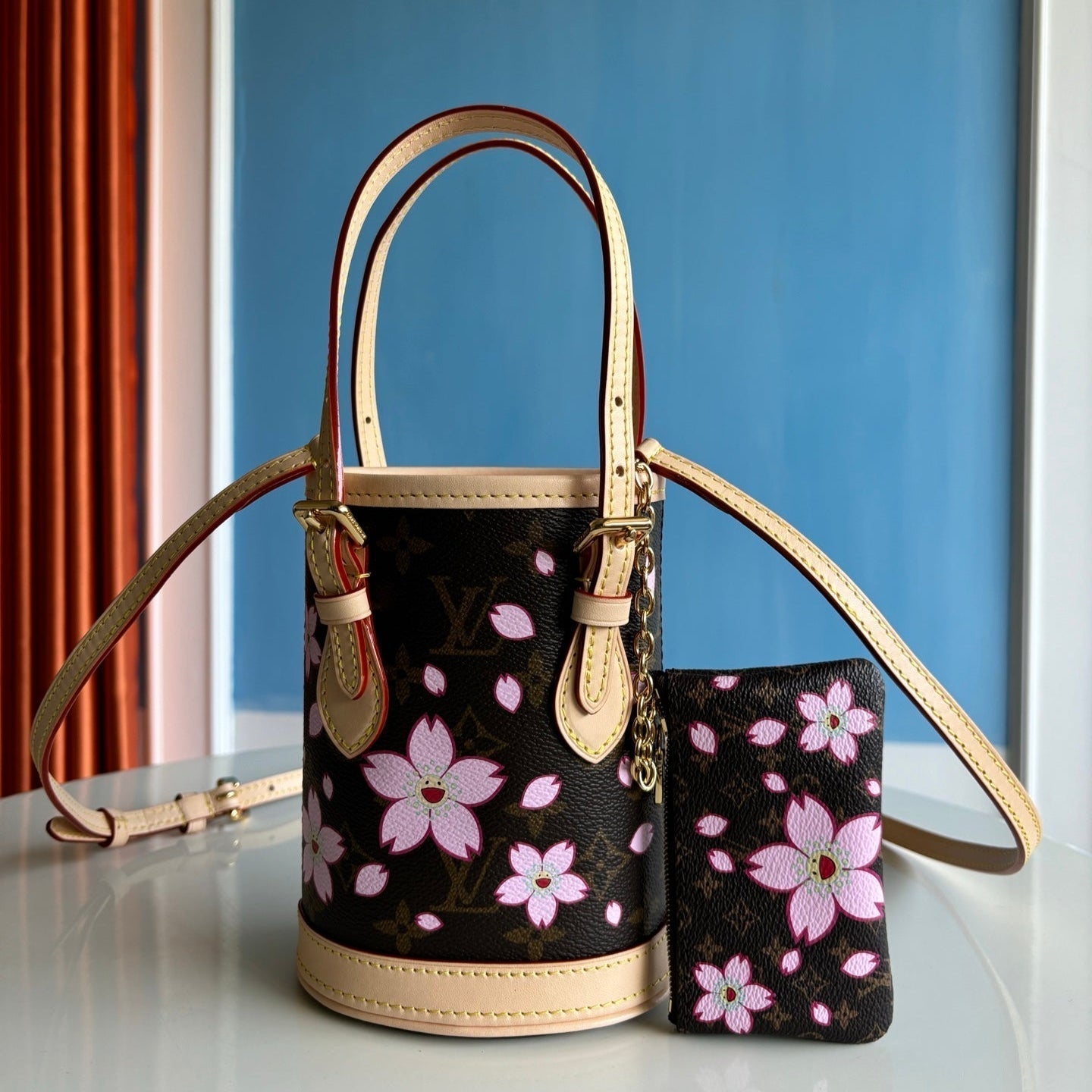 LV x TM Nano Bucket 17cm Sakura Brown Cherry Blossom Monogram Canvas