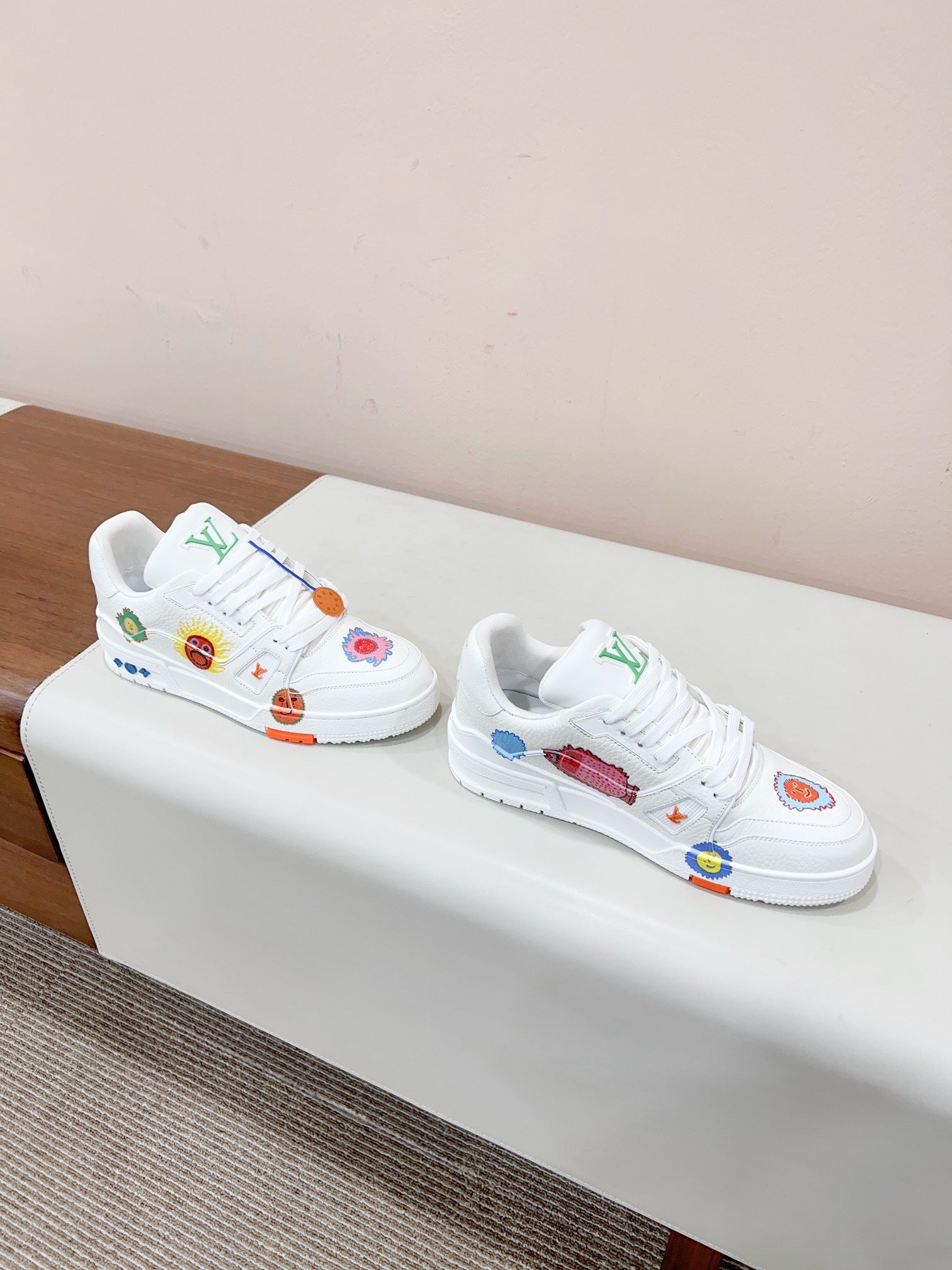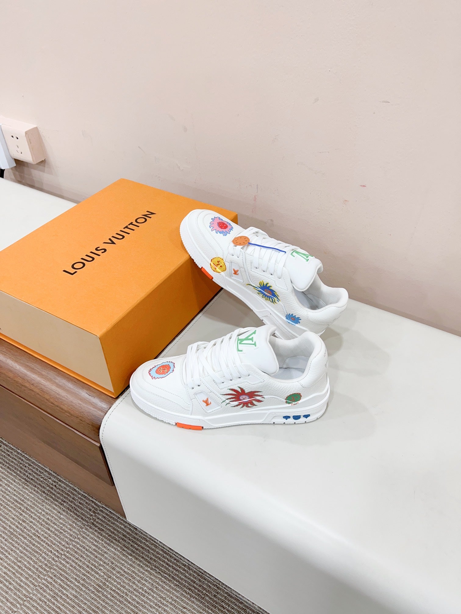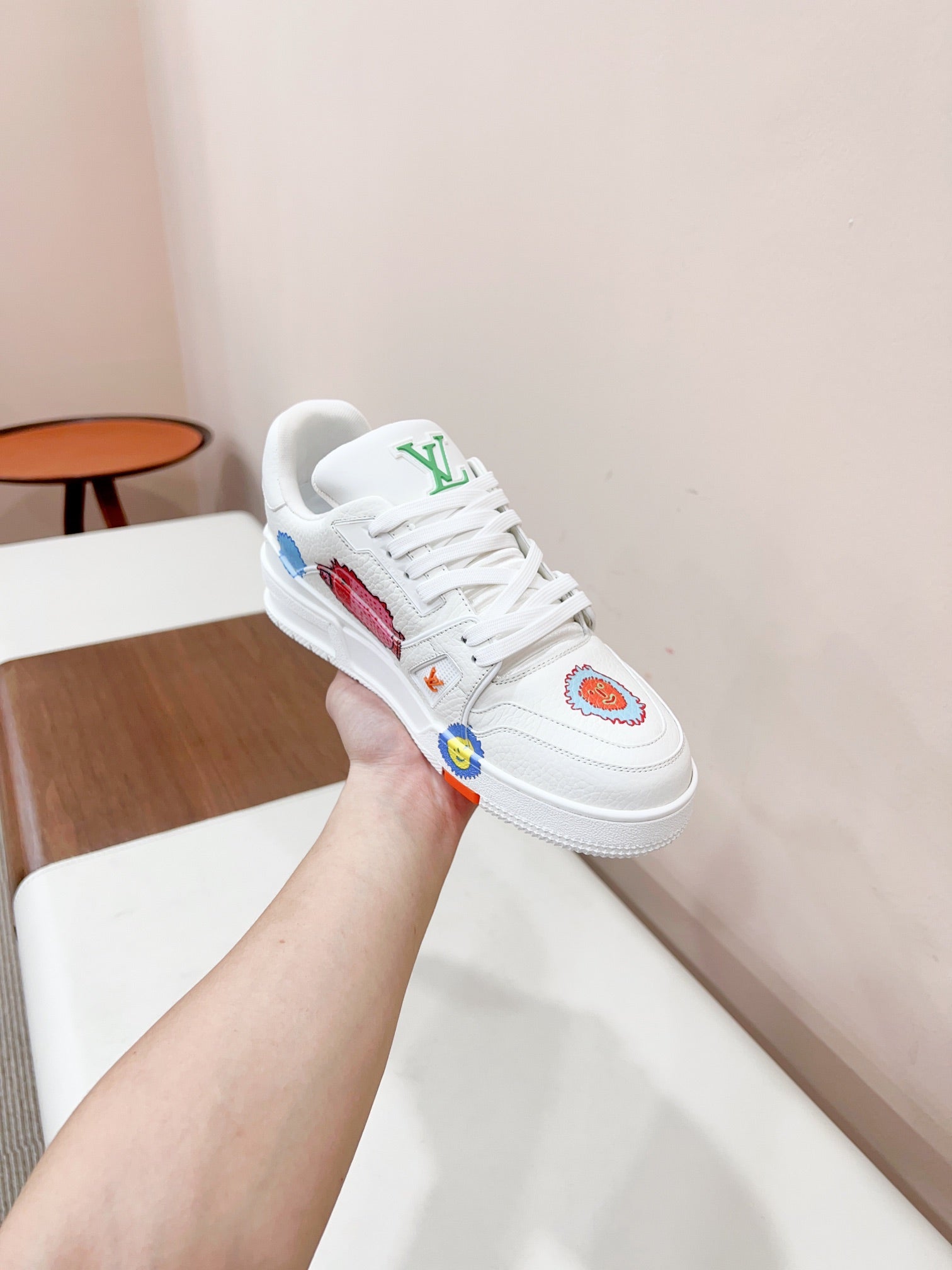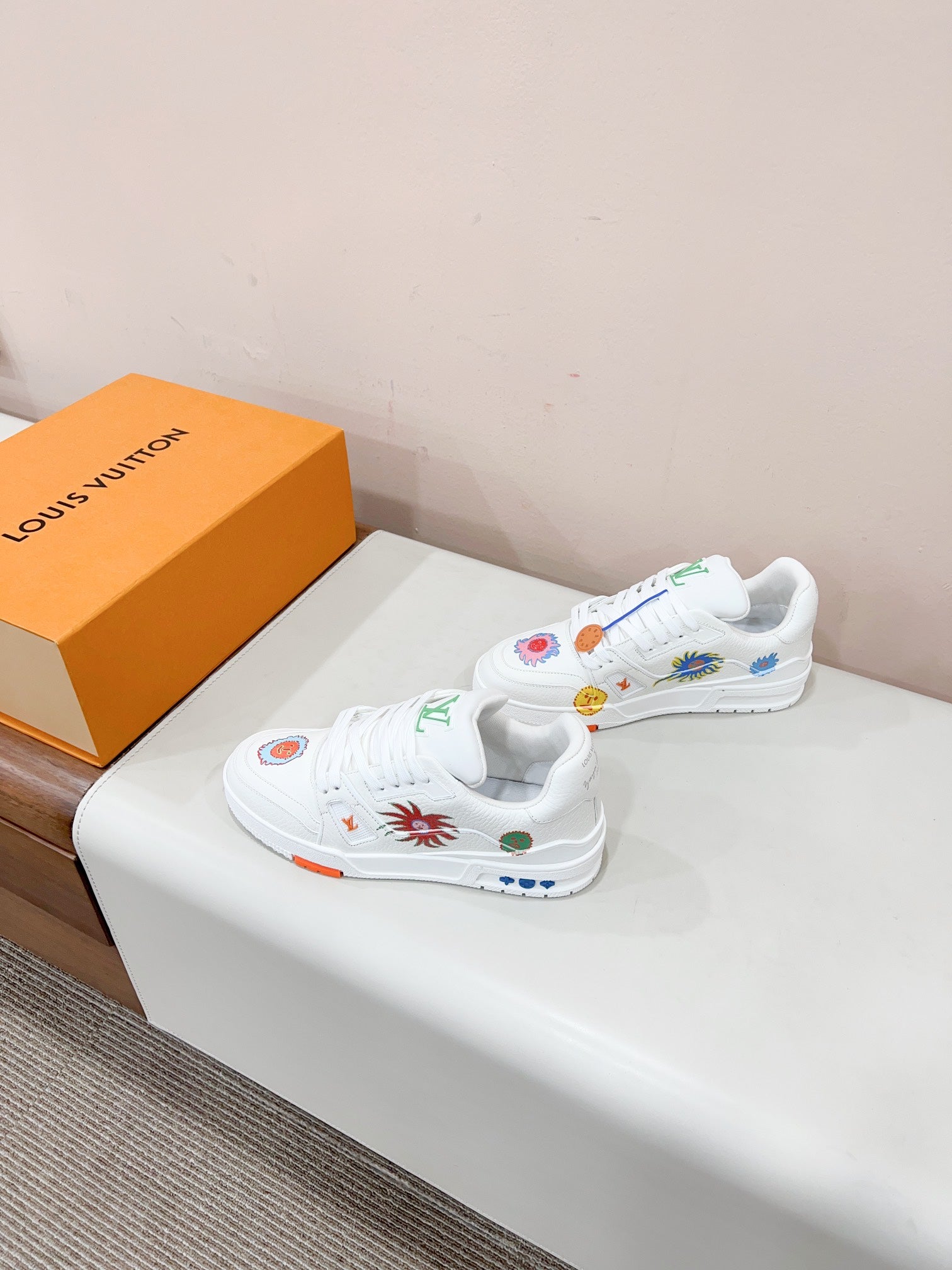 LV YK Trainer Sneakers White Print Cowhide 492958