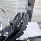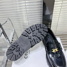 MARGARET CHUNKY LOAFER WITH FRINGES AND TRIOMPHE CHAIN IN POLISHED BULL GLOSSY BLACK