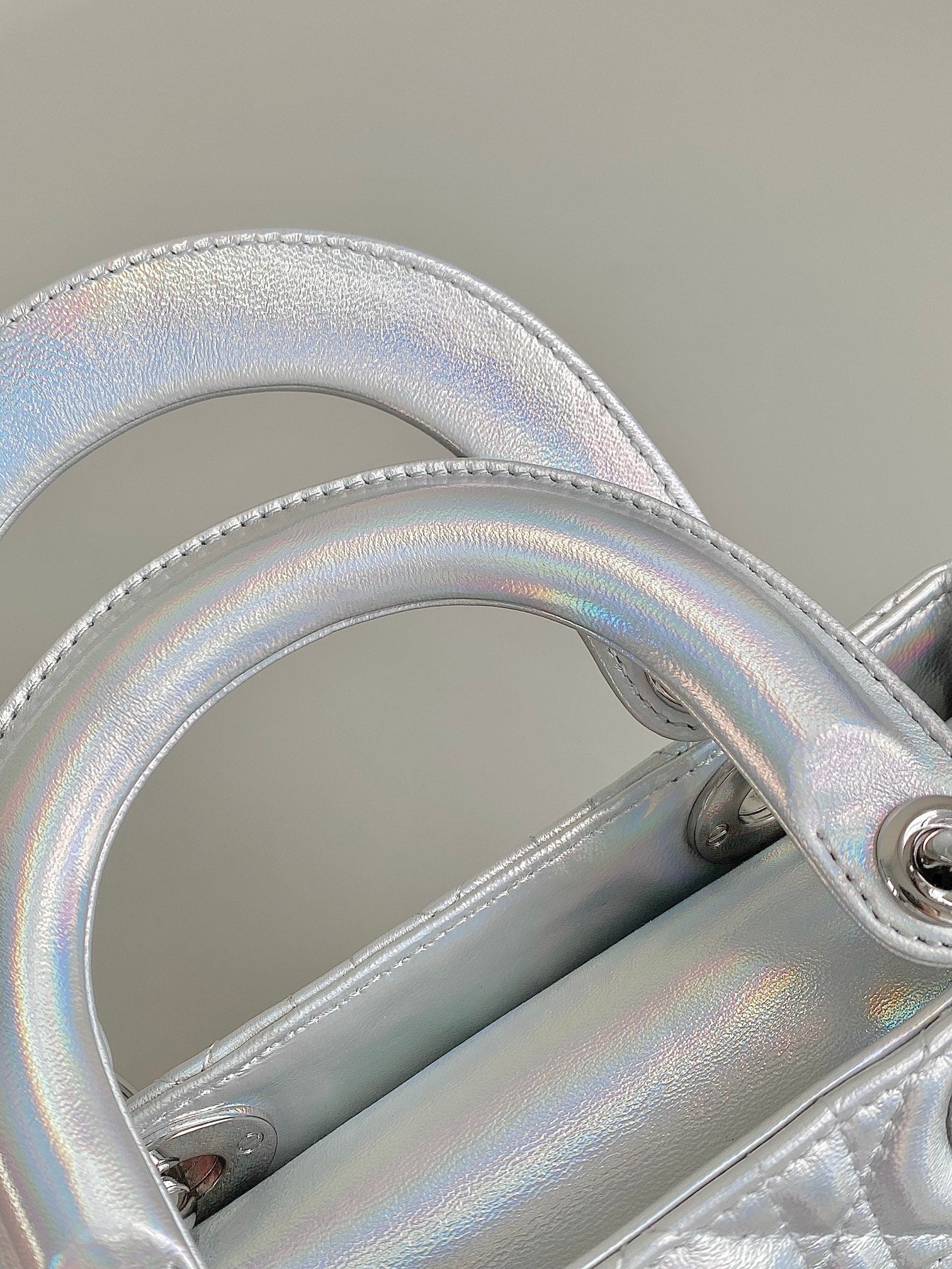 MEDIUM LADY 20 HANDBAG IN SILVER LAMBSKIN