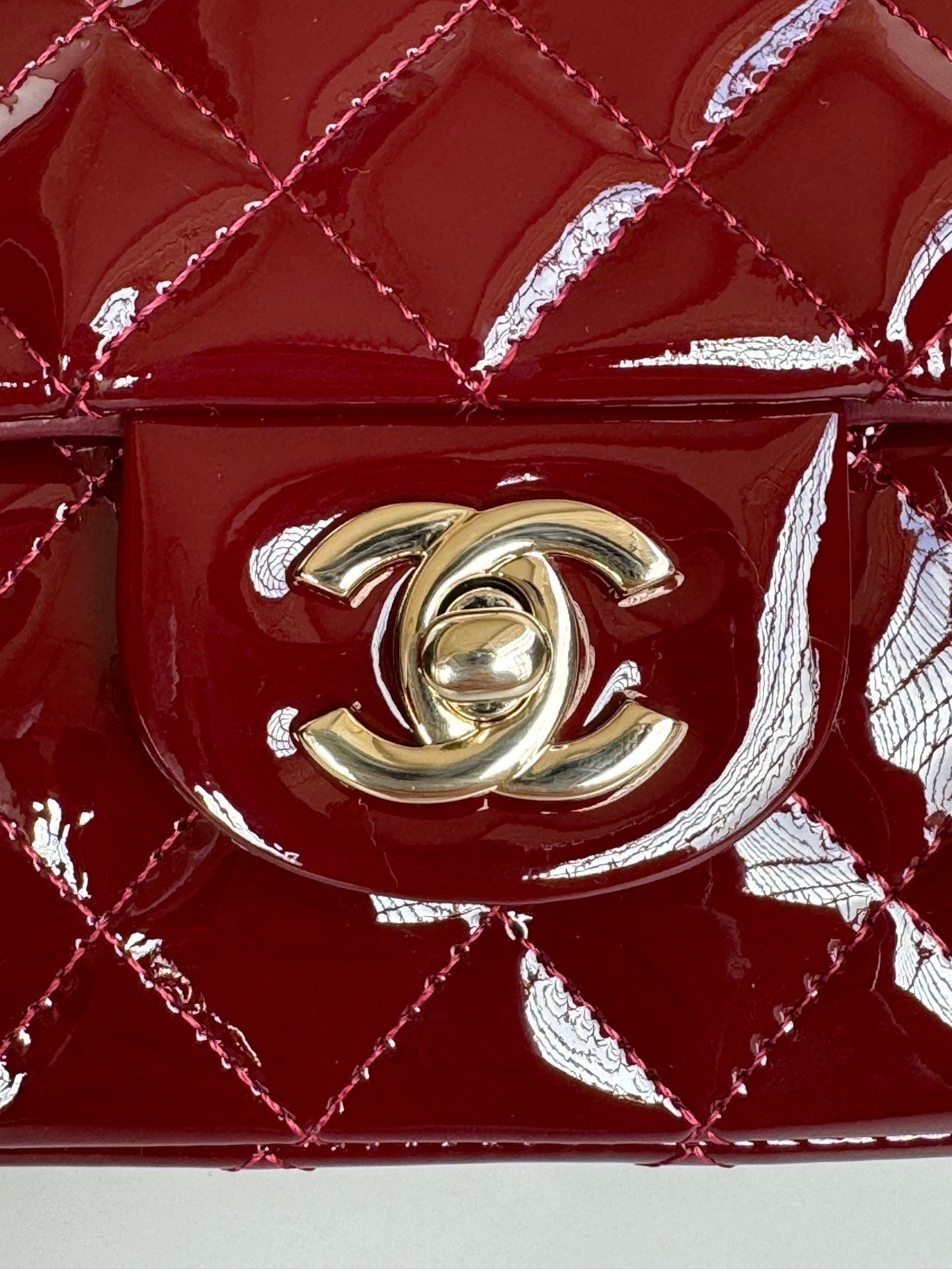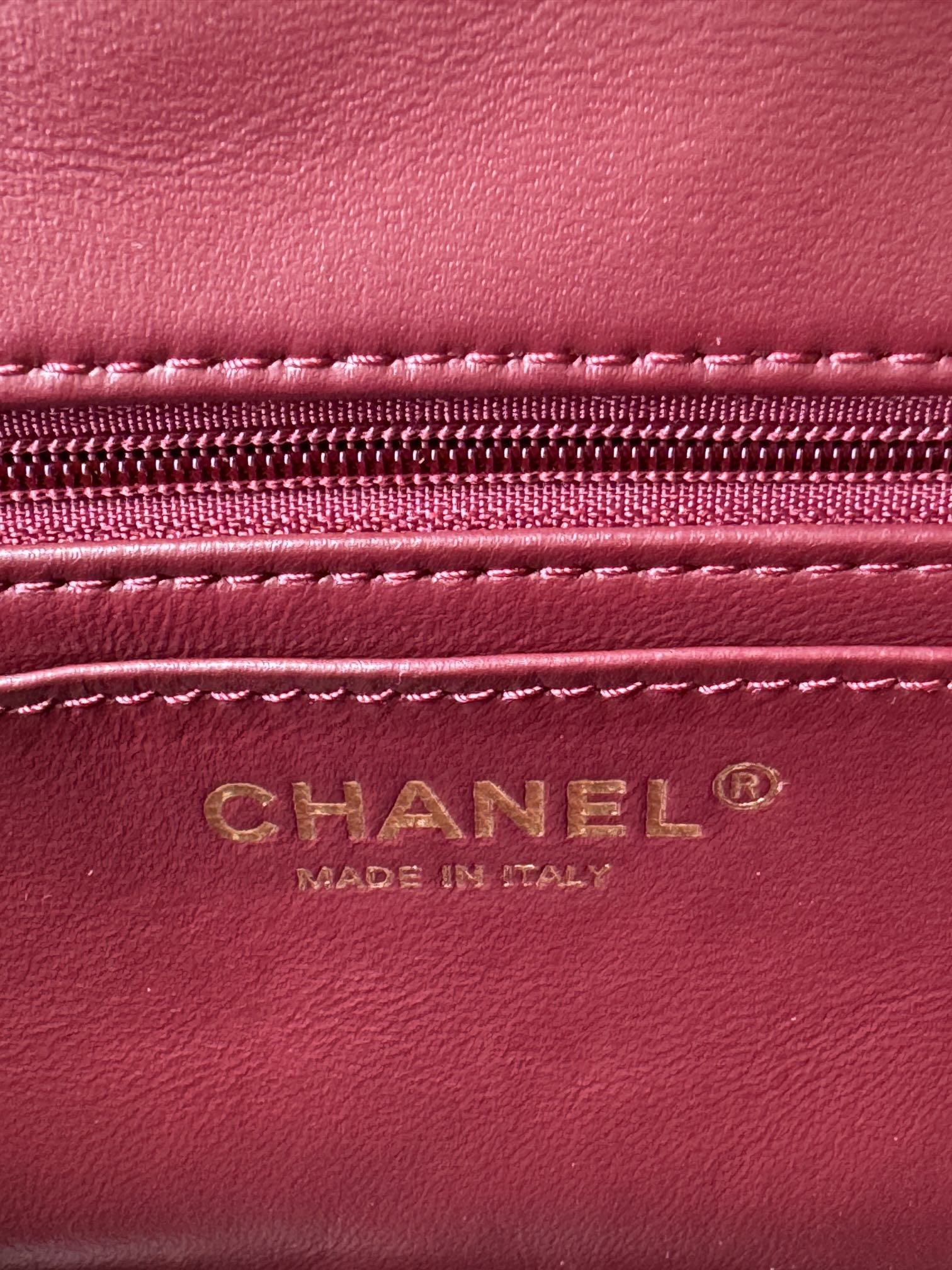 MINI FLAP BAG 20 IN MAHOGANY RED GLOSSY CALFSKIN GOLD HARDWARE