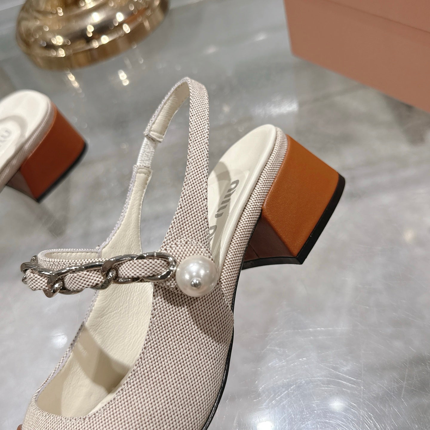 Miu 25C Slingback Pump 45MM Beige Cream mix Brown Fabric 235371