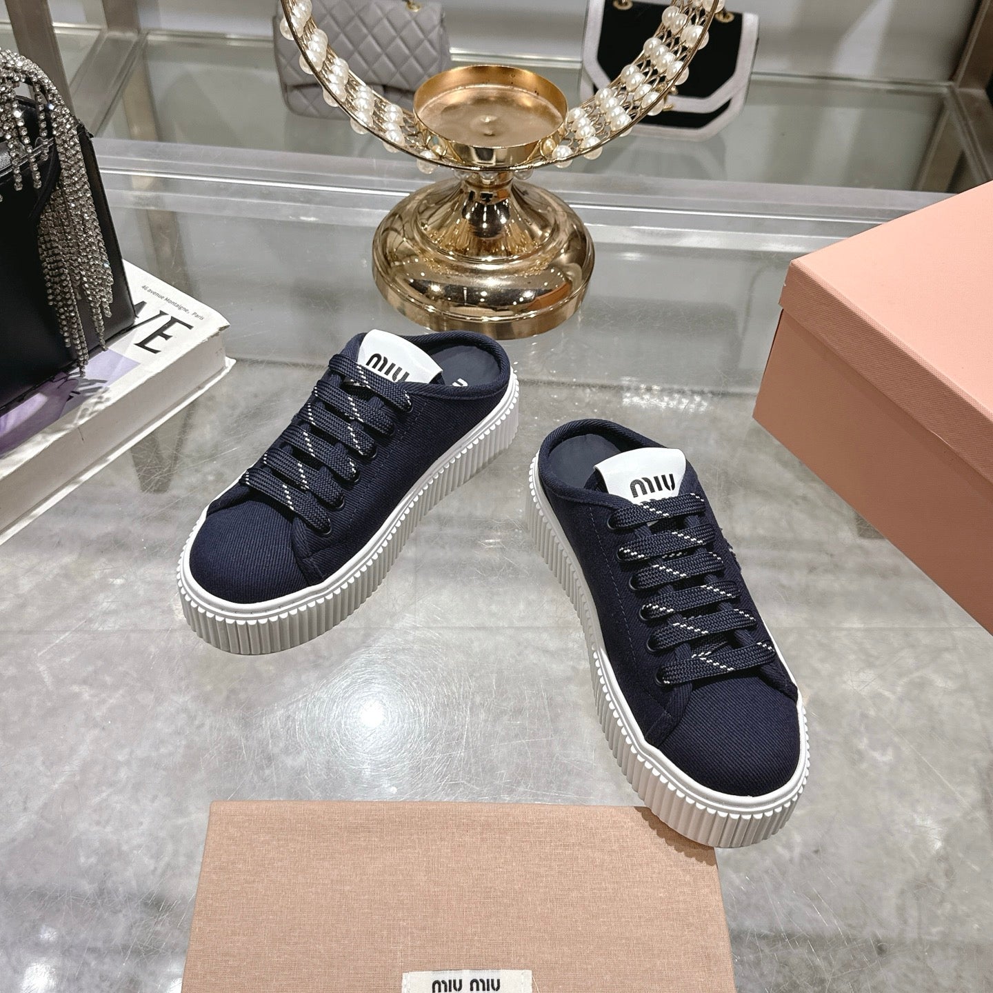 Miu 25C Sneaker Mules Night Blue Demin Fabric 235315
