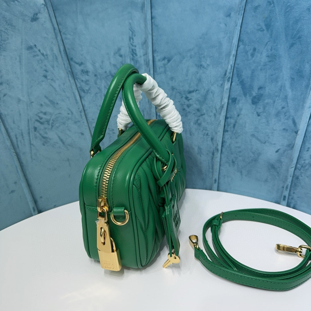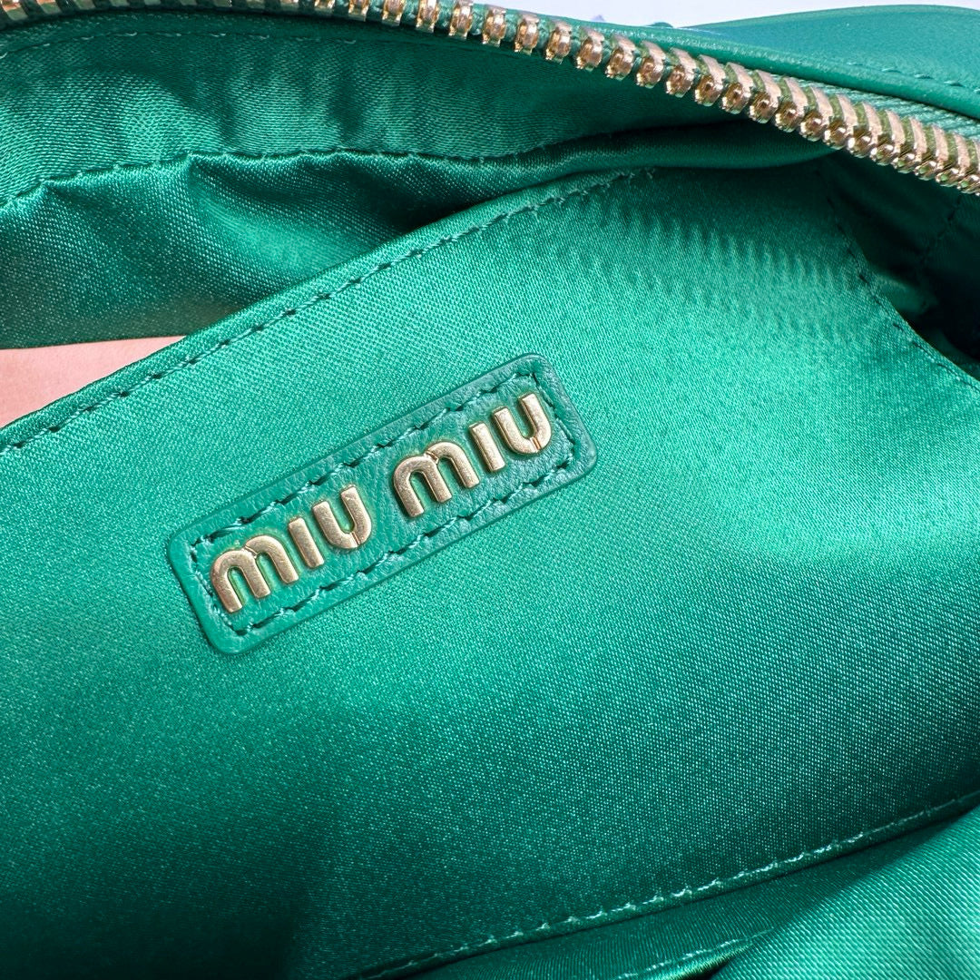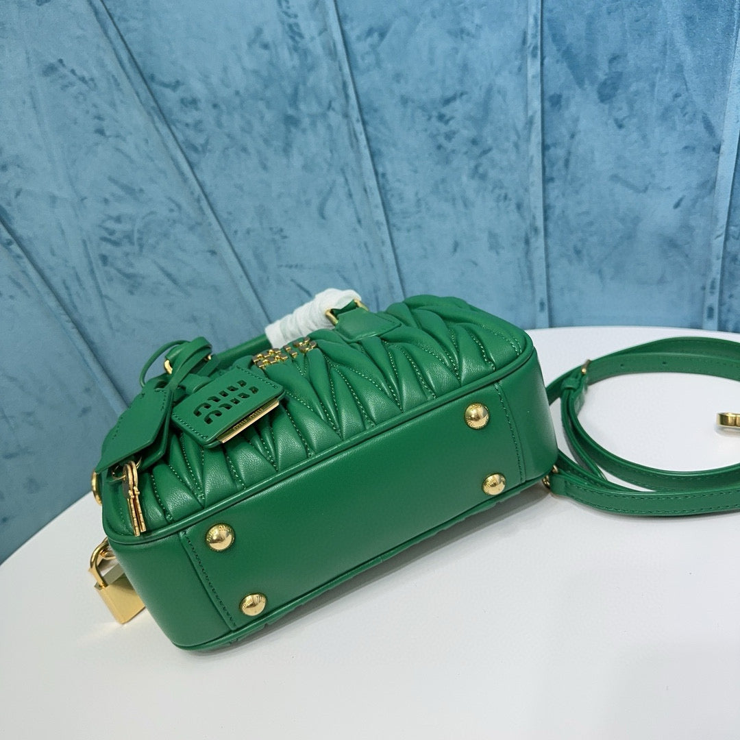 Miu Arcadie Matelasse Bag 19 In Green Lambskin Gold Hardware