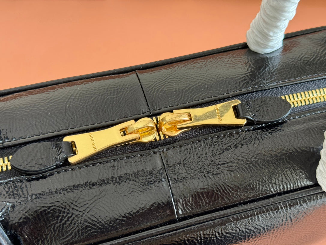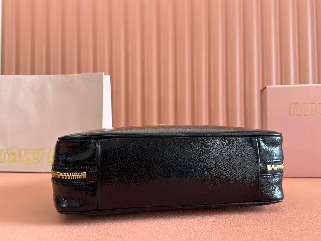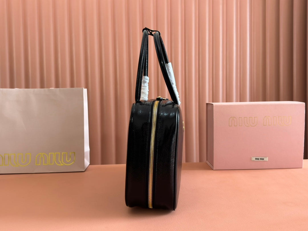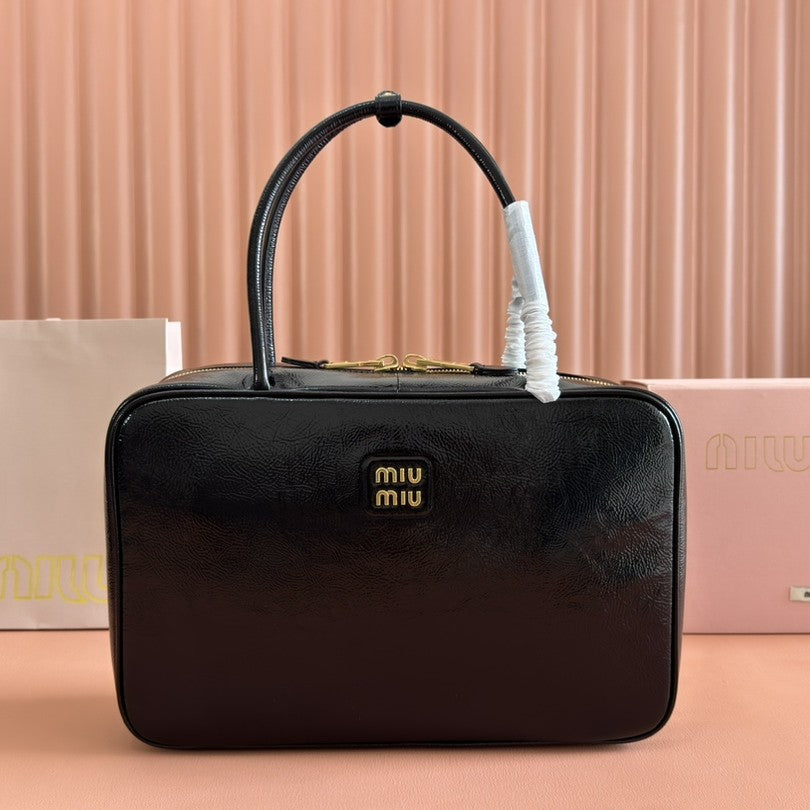 Miu Beau Top-Handle Bag 34cm Black Leather 239697