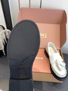 Miu Tassel Loafers White Polished Leather 490951