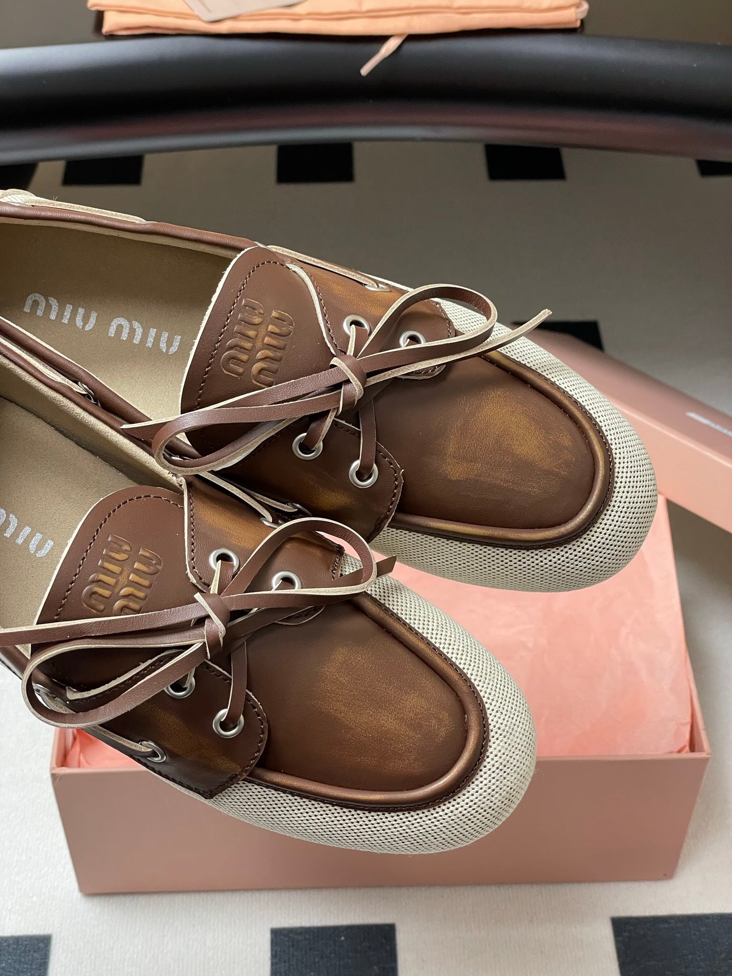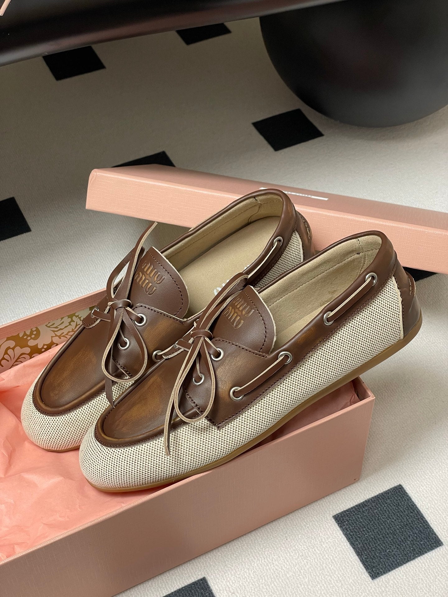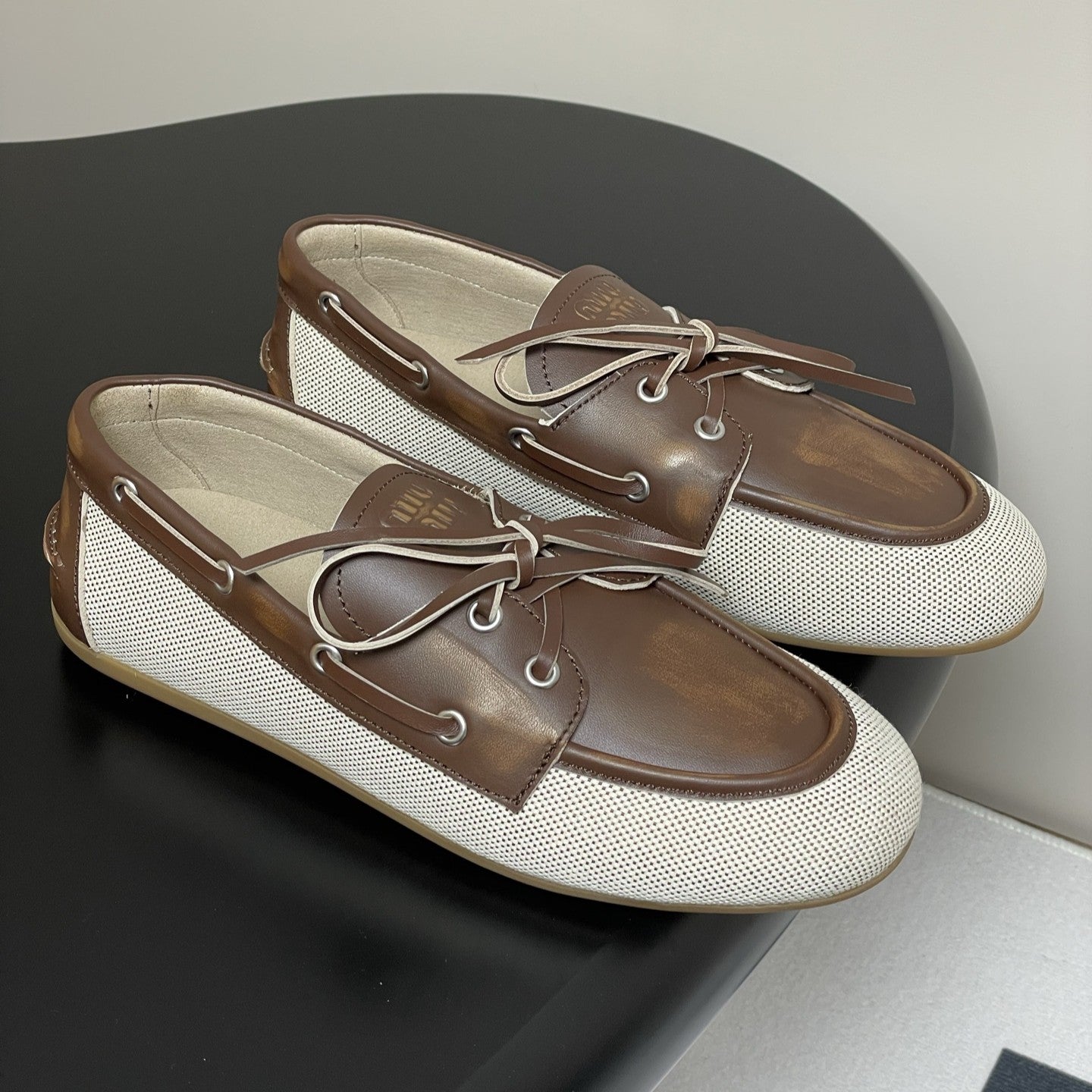 Miumiu Beige and Brown canvas leather loafer 227141