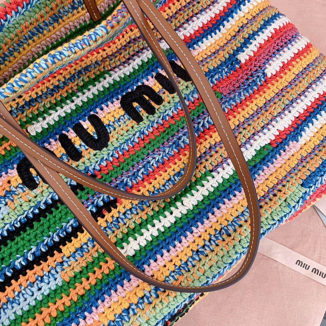 Miumiu Multicolored Crochet Tote Bag 40cm