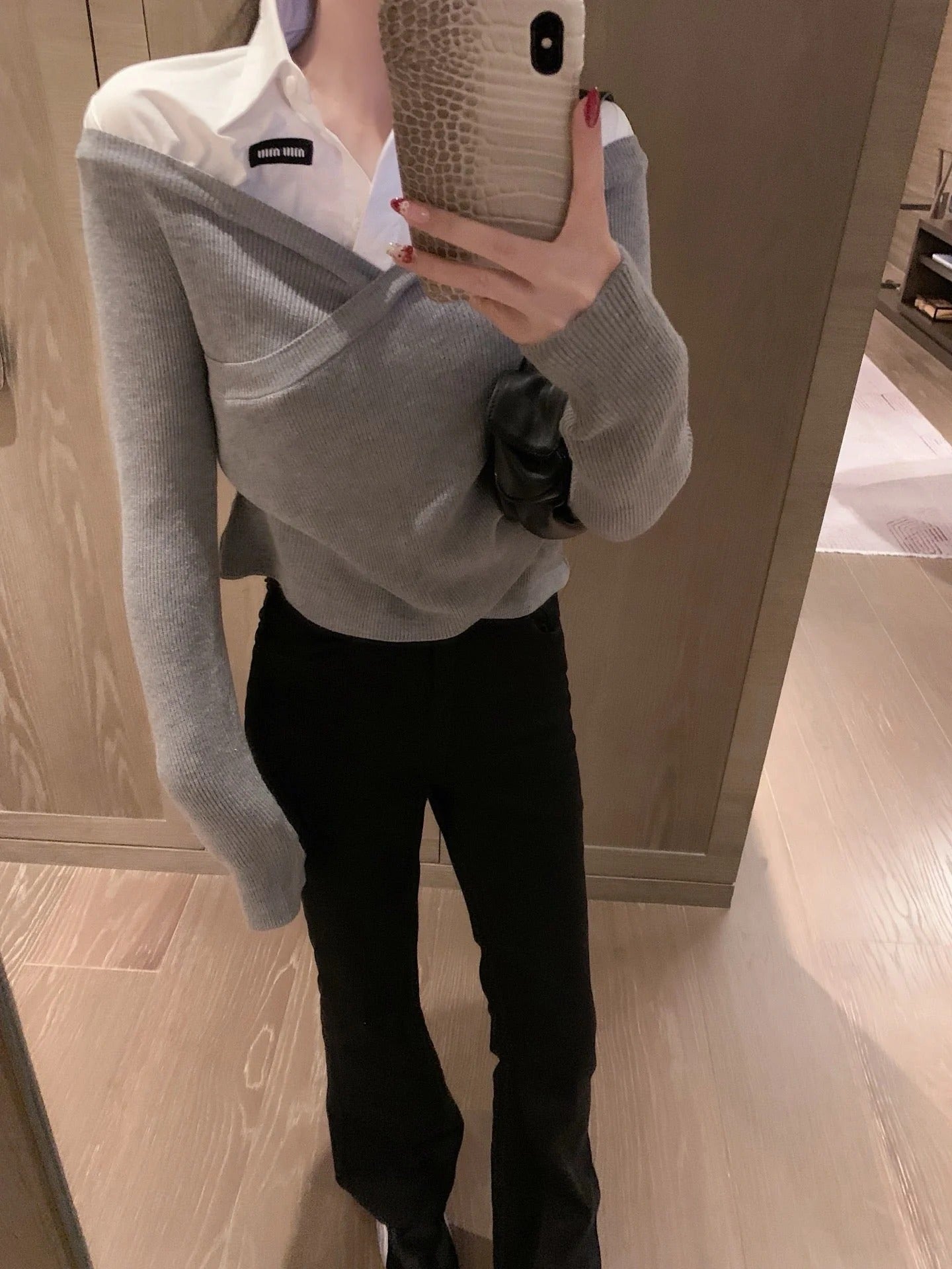 MIUMIU TWO-PIECE COLLARED KNIT SET STYLE 445