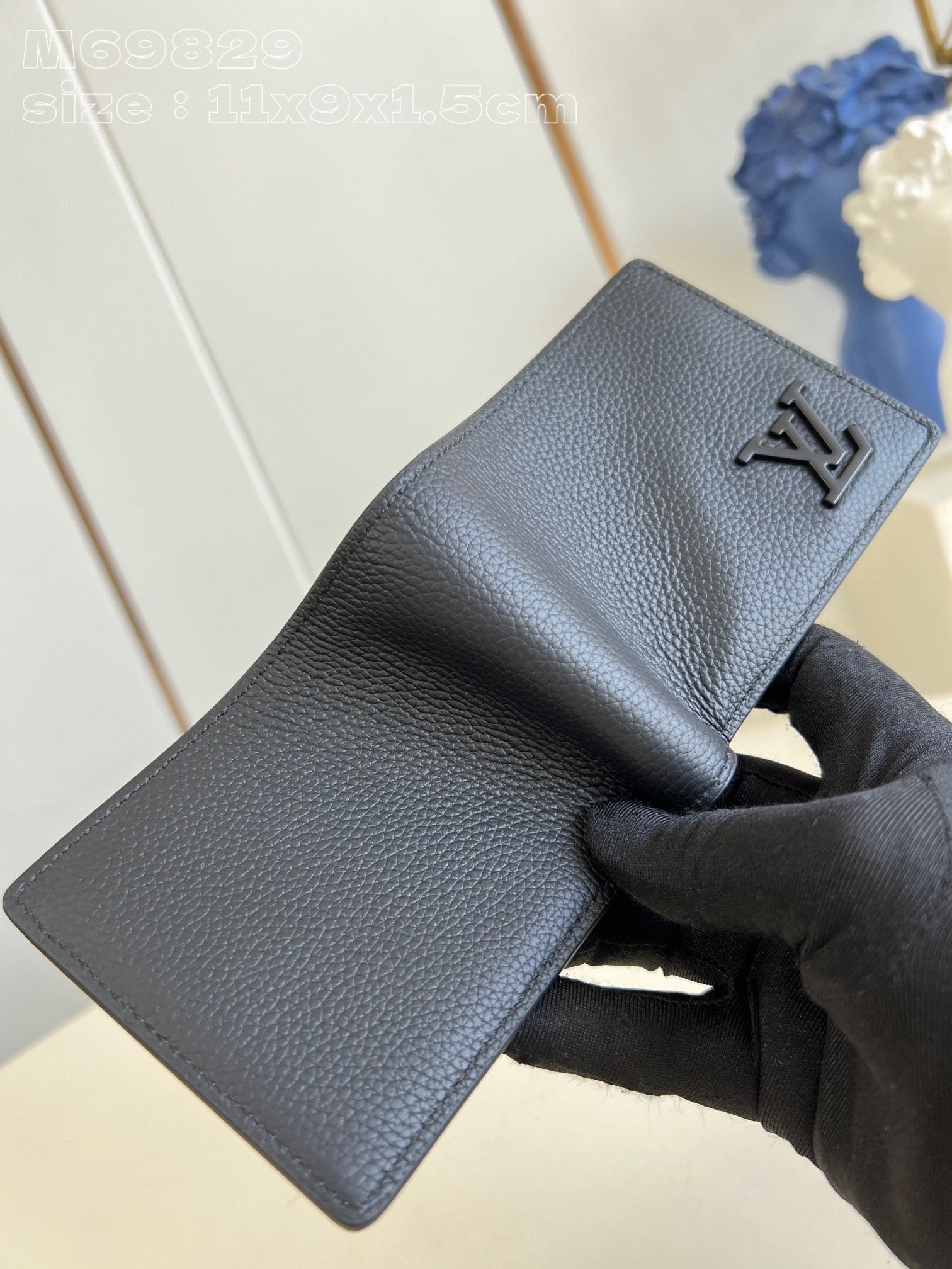 MULTIPLE WALLET AEROGRAM 10CM BLACK CALFSKIN