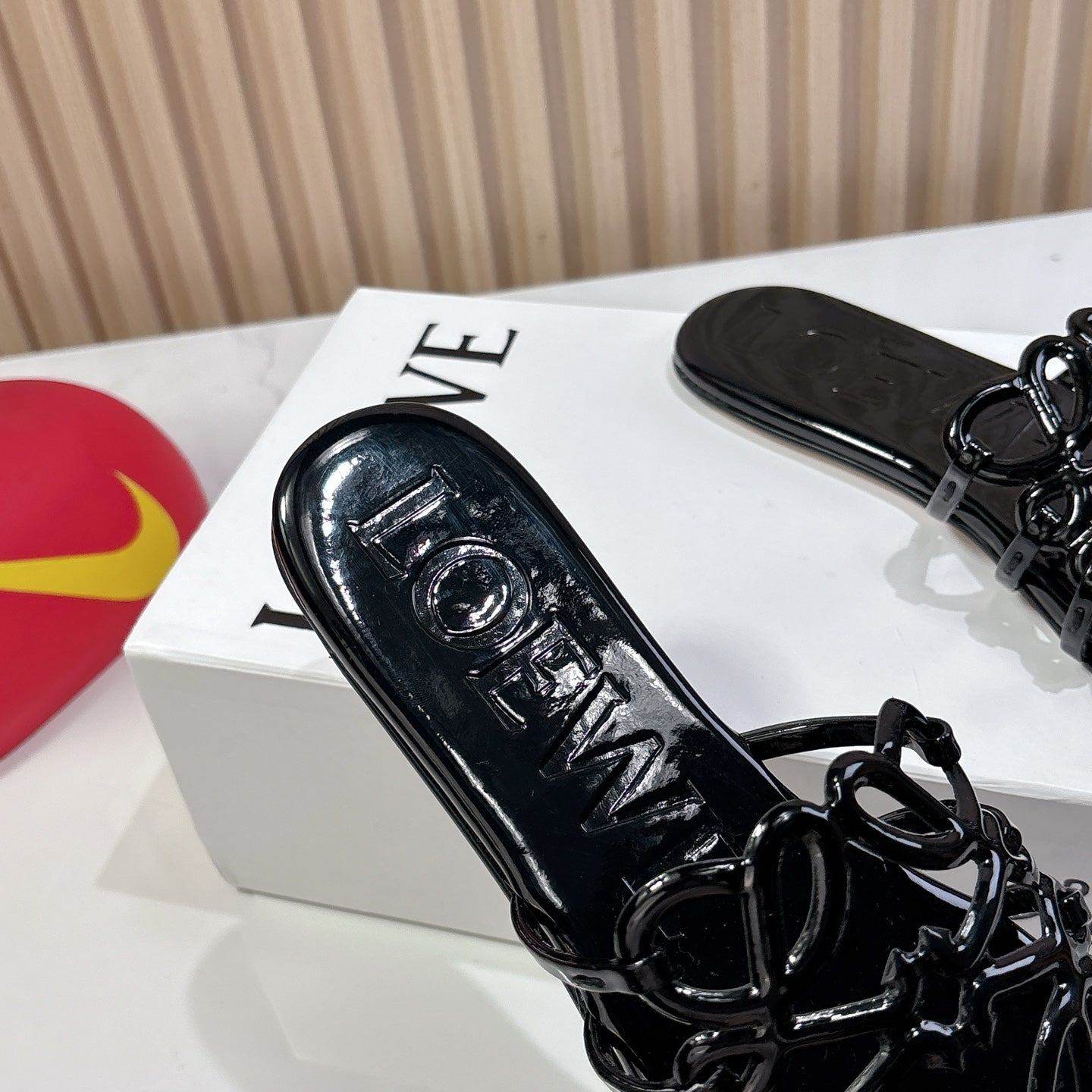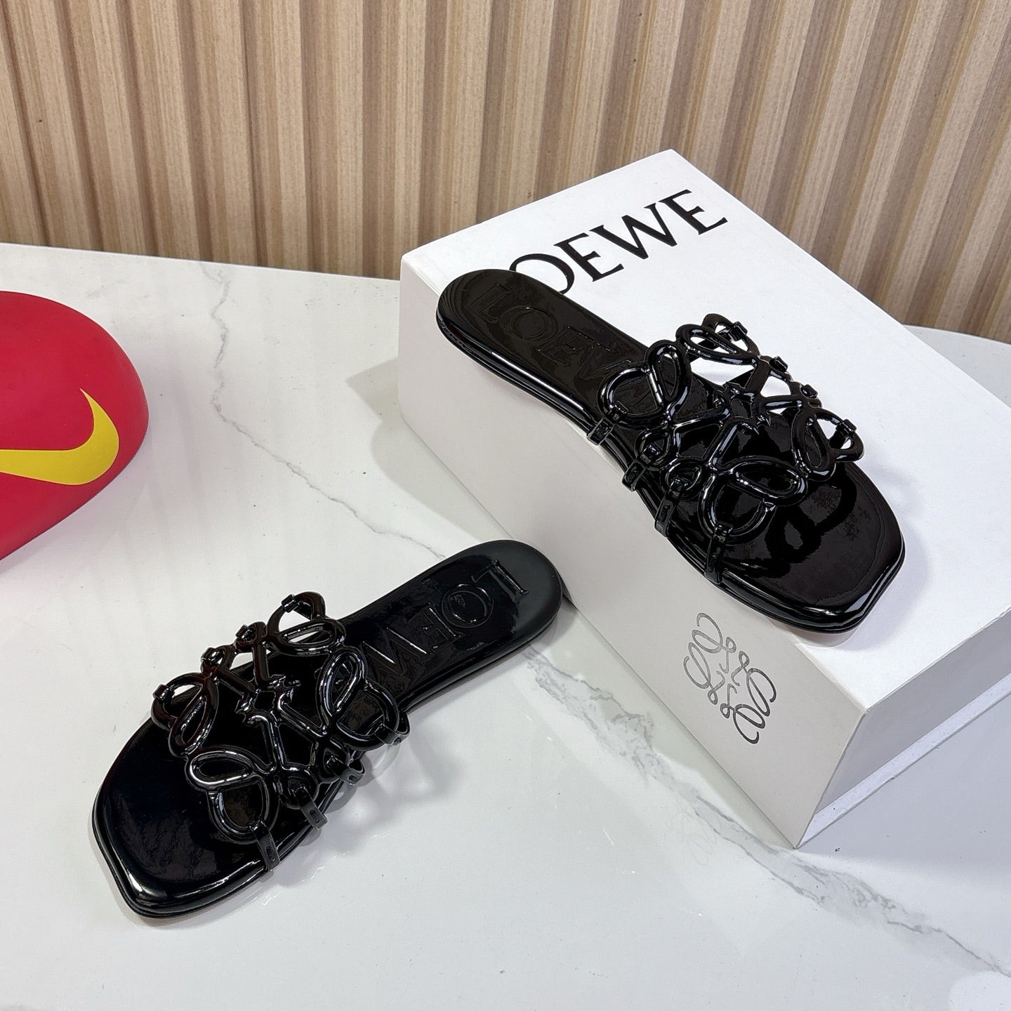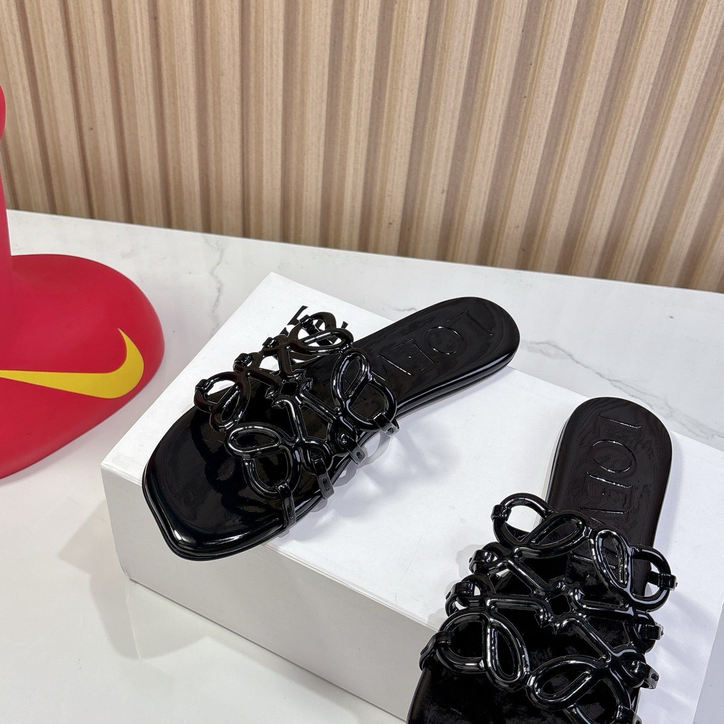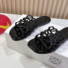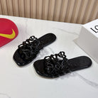 Petal Anagram Slide in Black Patent Calfskin 273744