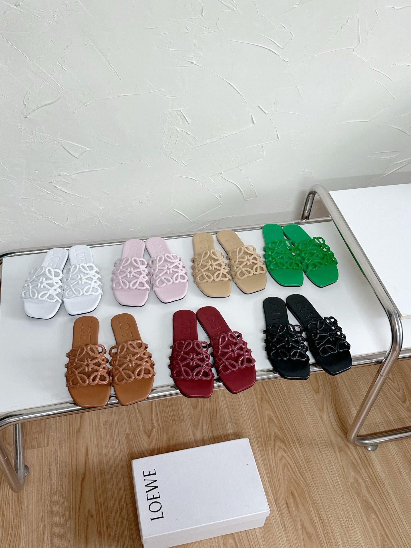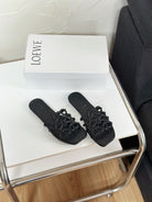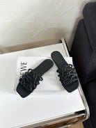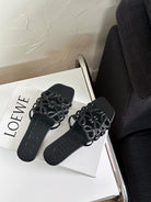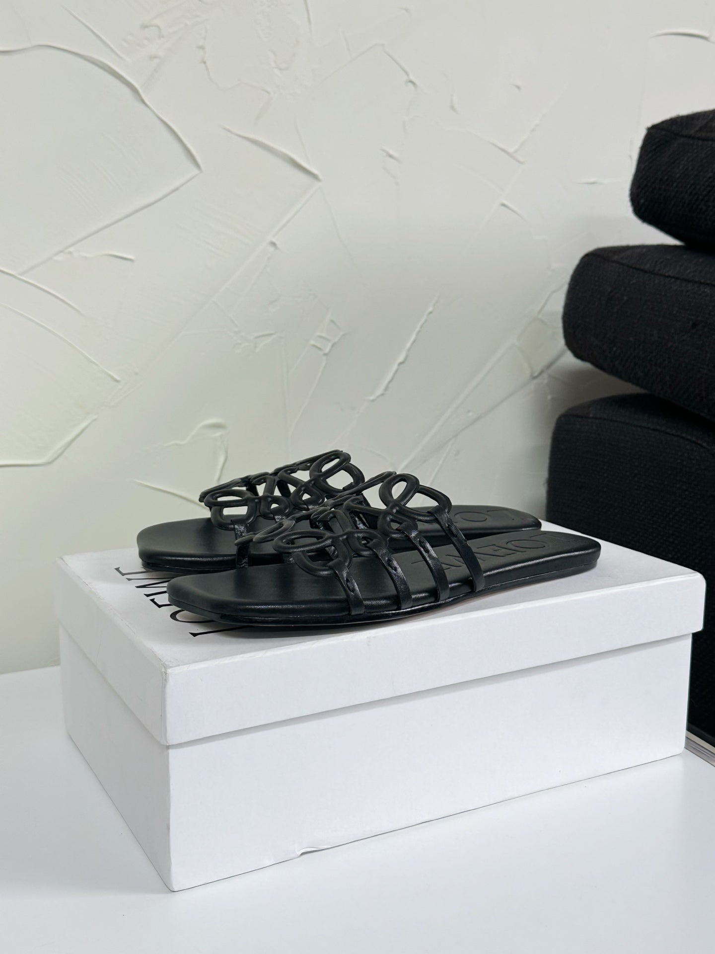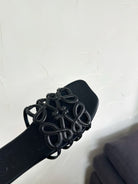 Petal Anagram Slide in Black Soft Calfskin 273512