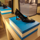 POINTED TOE PUMPS BLACK WITH LOGO PRINT SMOOTH CALFSKIN
