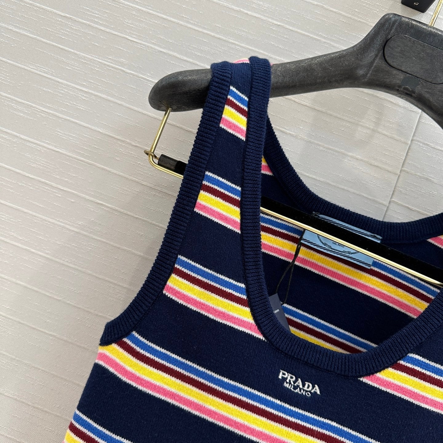 Prada 2025 Striped Vest Navy Blue mix colors Cotton