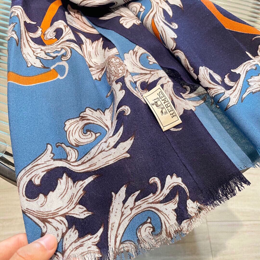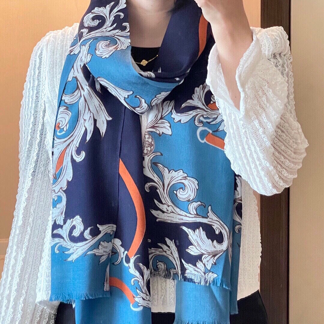 PRINTED SCARF 200 CM IN BLUE MIX COLORFUL CASHMERE 393004