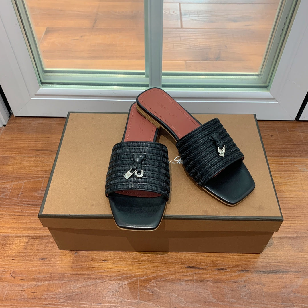 Quare Toe Sprightly Charms Mule Black Marron Calfskin