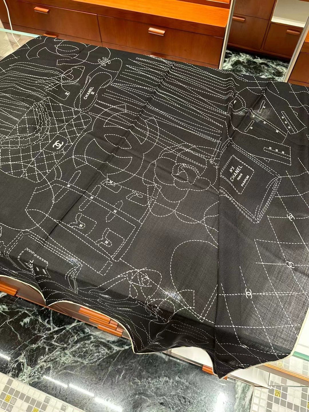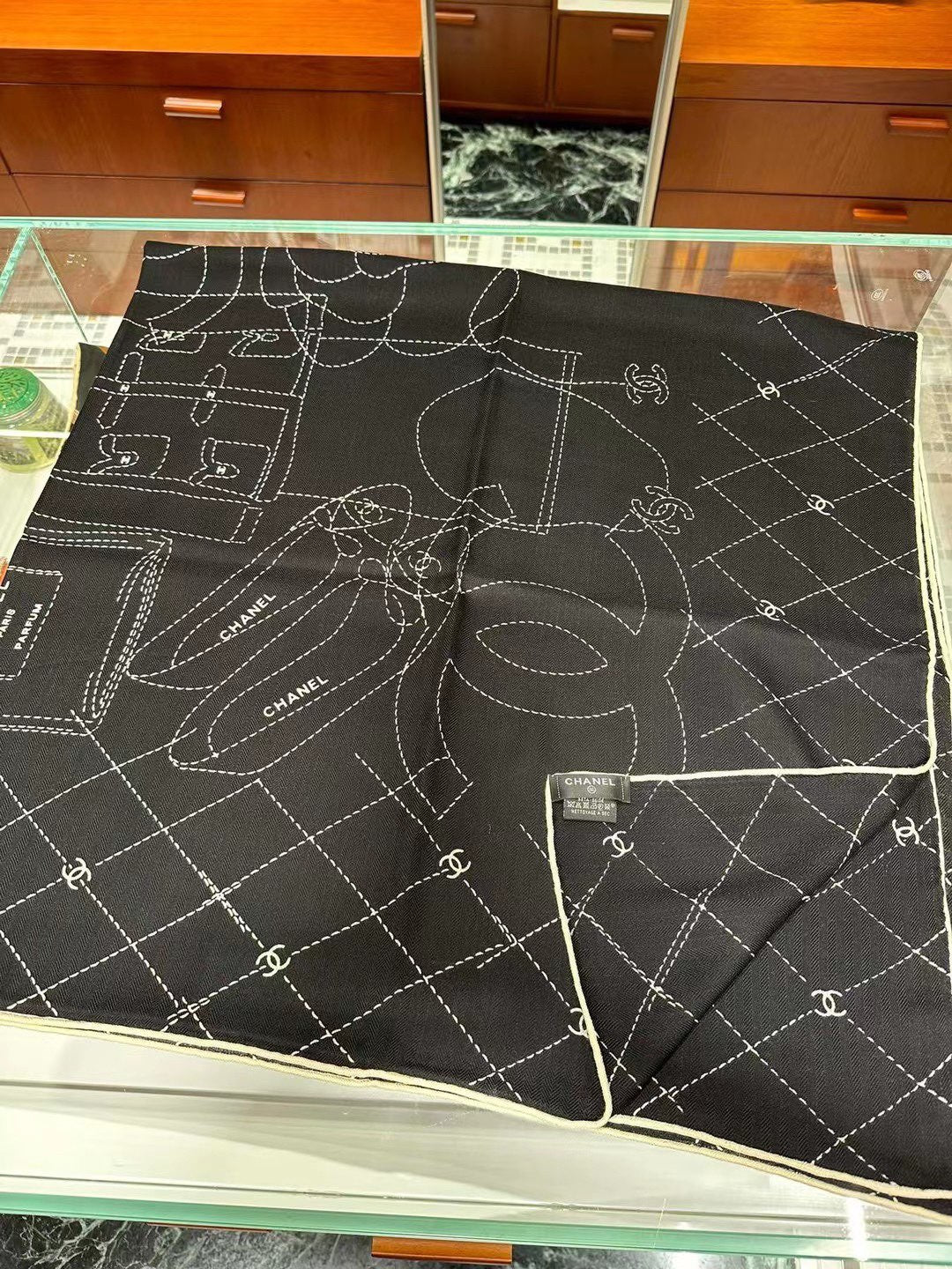 SILK WOOL SQUARE SCARF 140 CM BLACK 393128