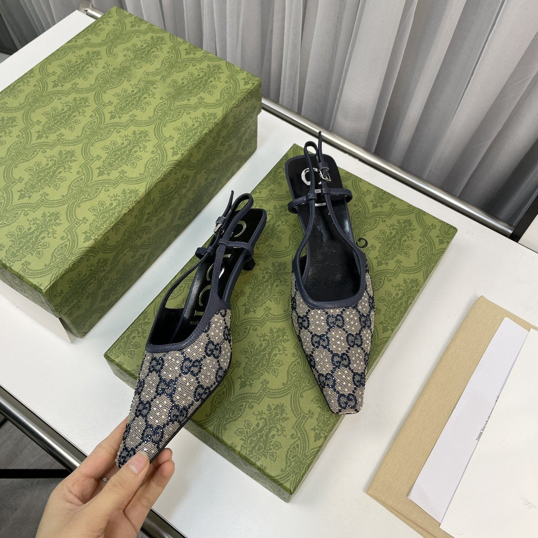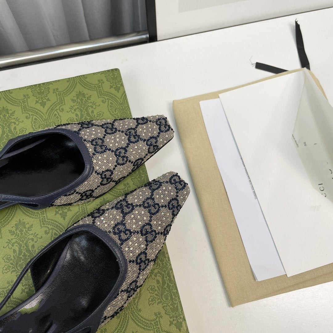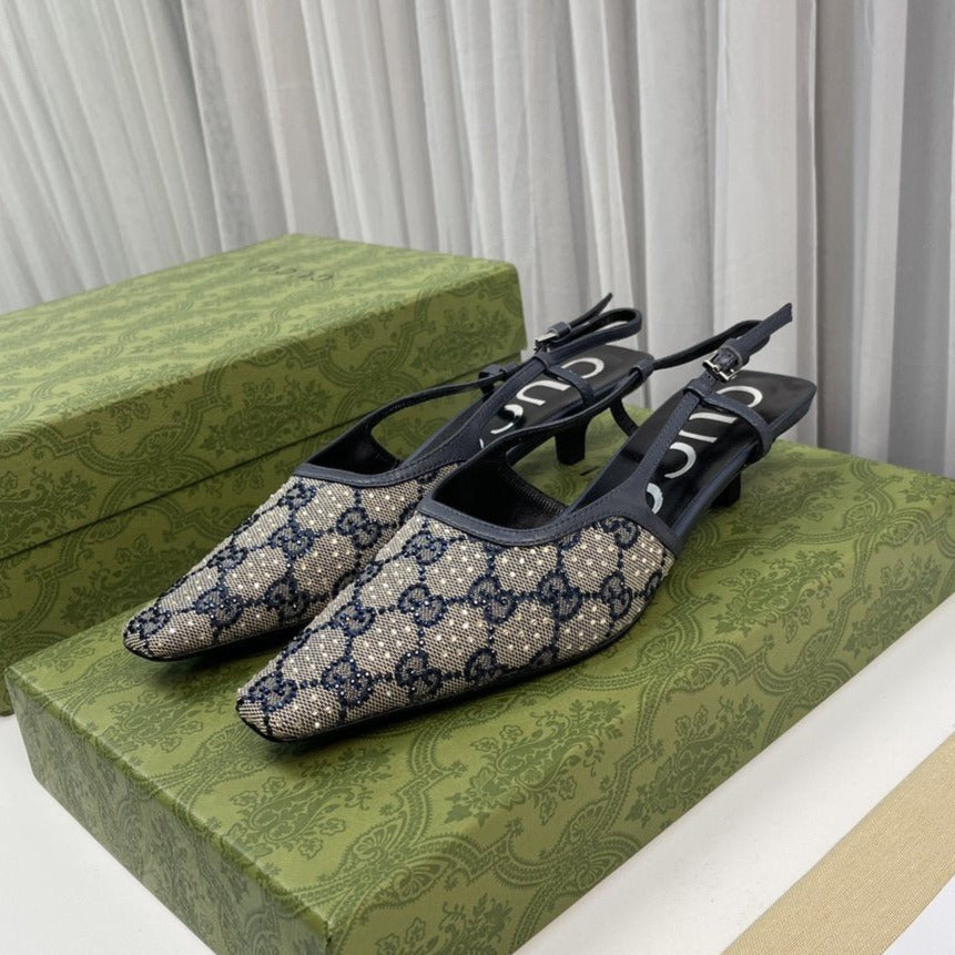sling back pump 40 beige and blue canvas