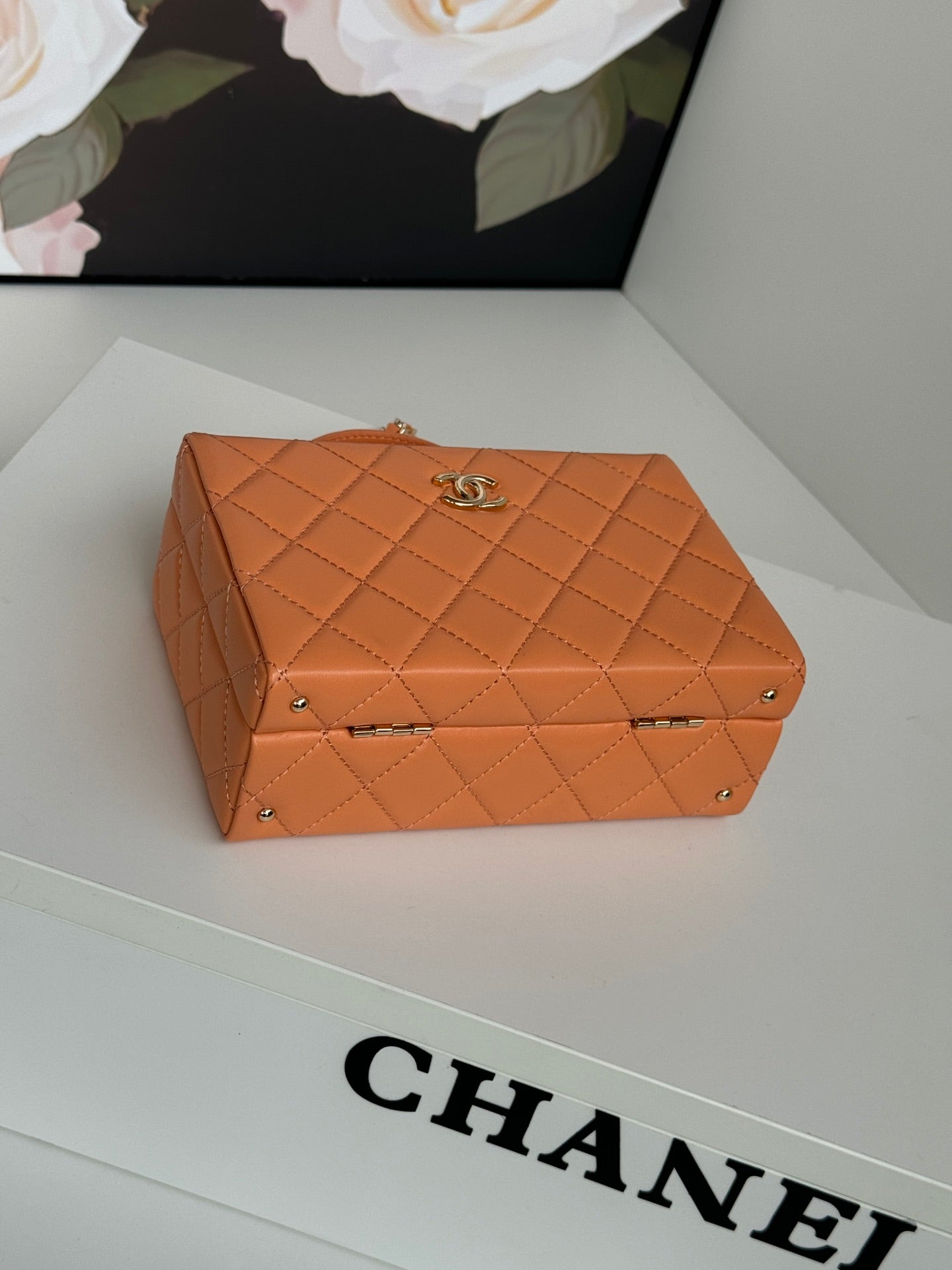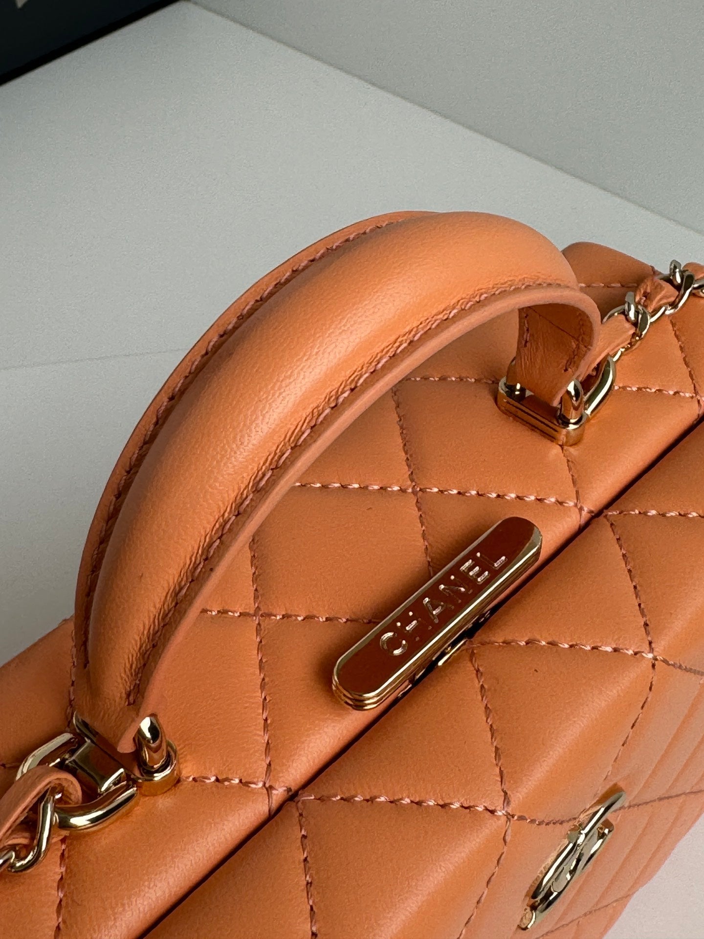 SMALL BOX BAG 18 IN CARROT LAMBSKIN GOLD HARDWARE