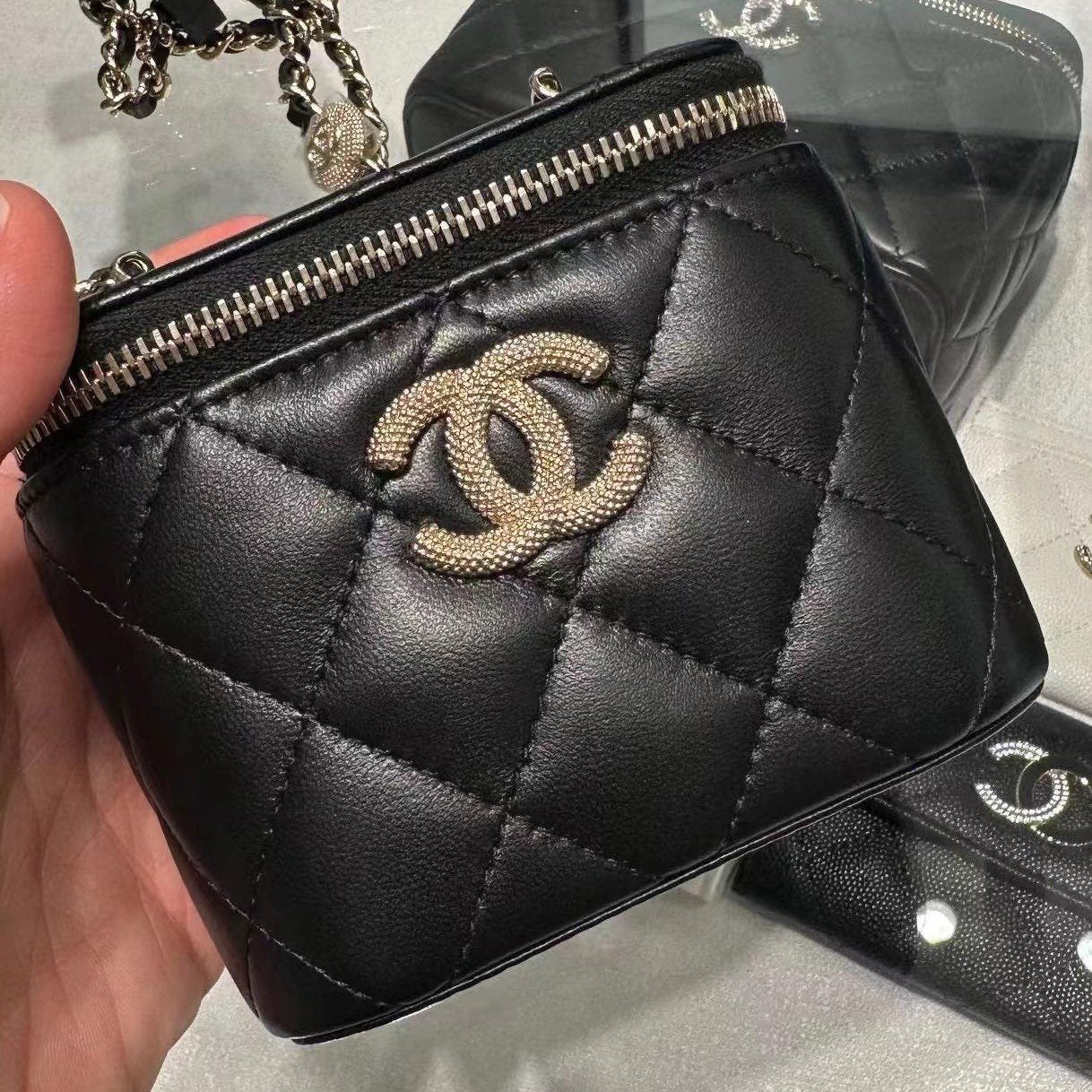 SMALL VANITY CASE 11 IN BLACK CALFSKIN GOLD HARDWARE