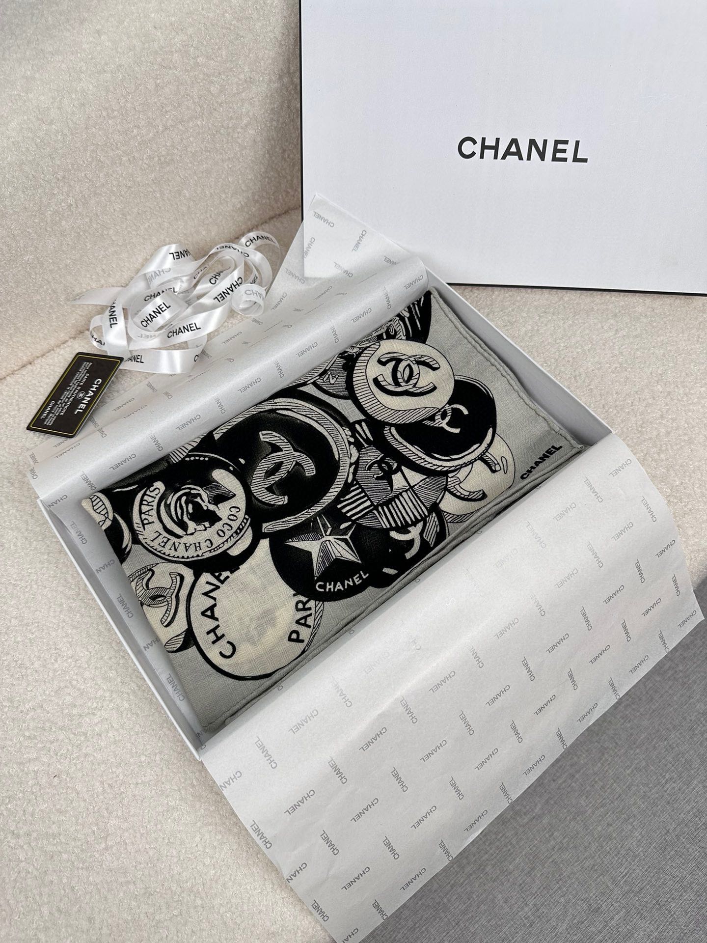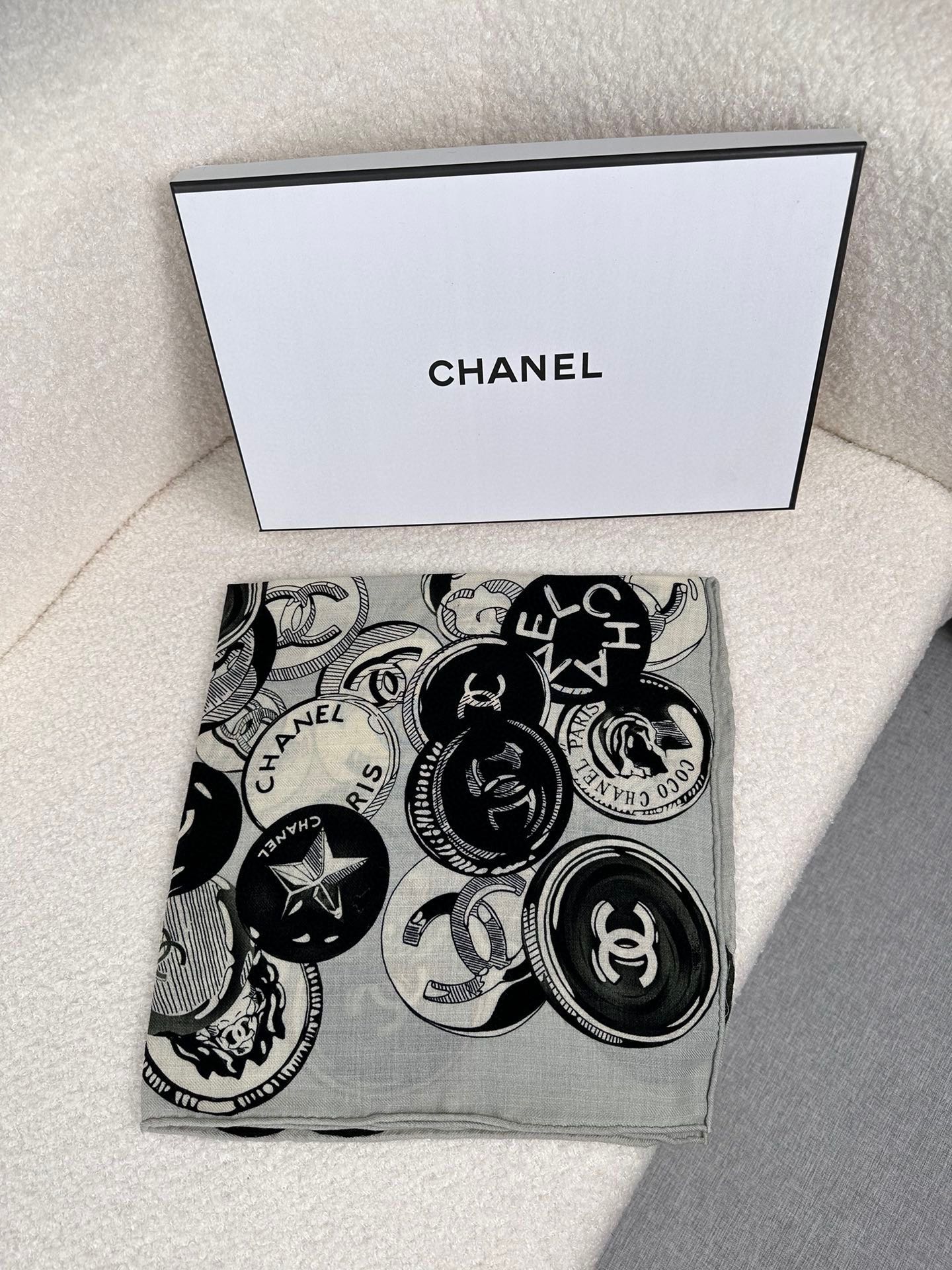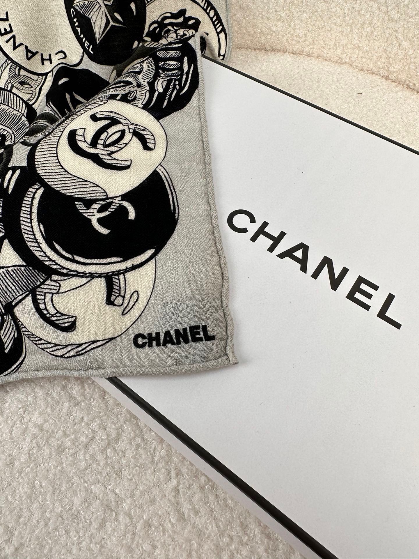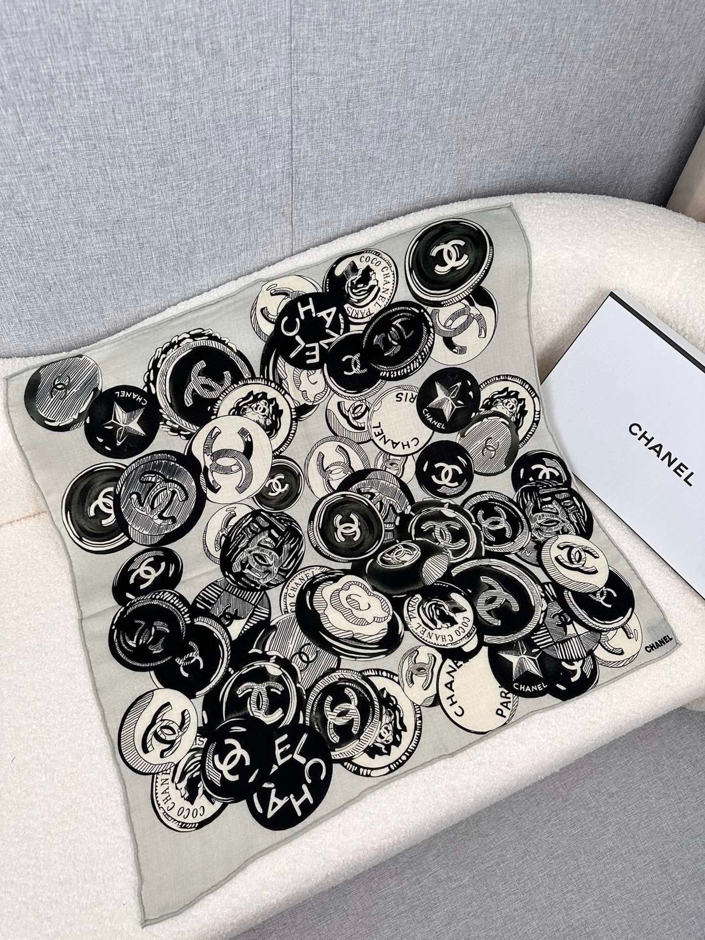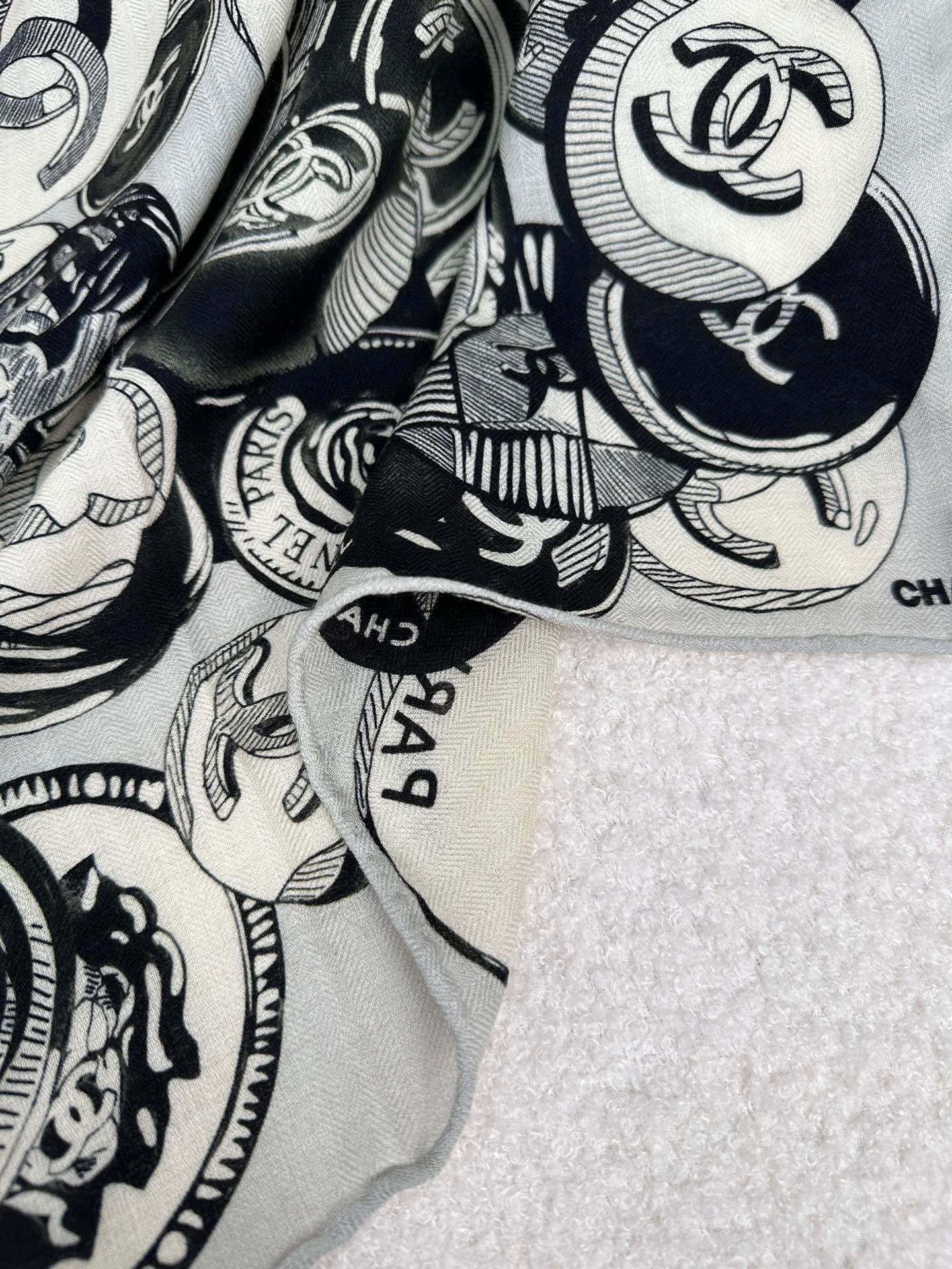 SQUARE SCARF 70 CM IN BLACK MIX WHITE CASHMERE AND SILK 399803