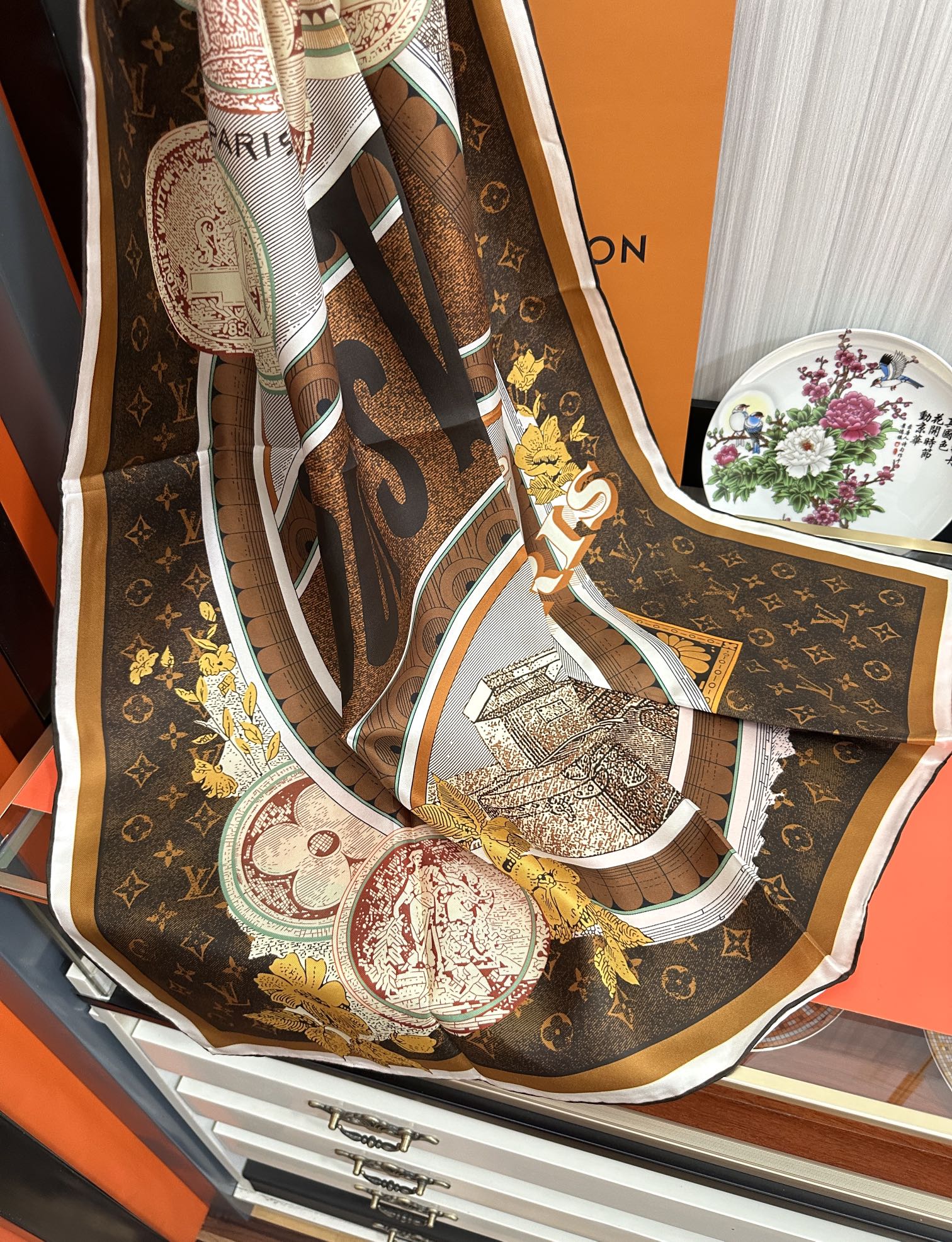 SQUARE SILK SCARF MALLES MERVEILLEUSES 90 CM BROWN 399995