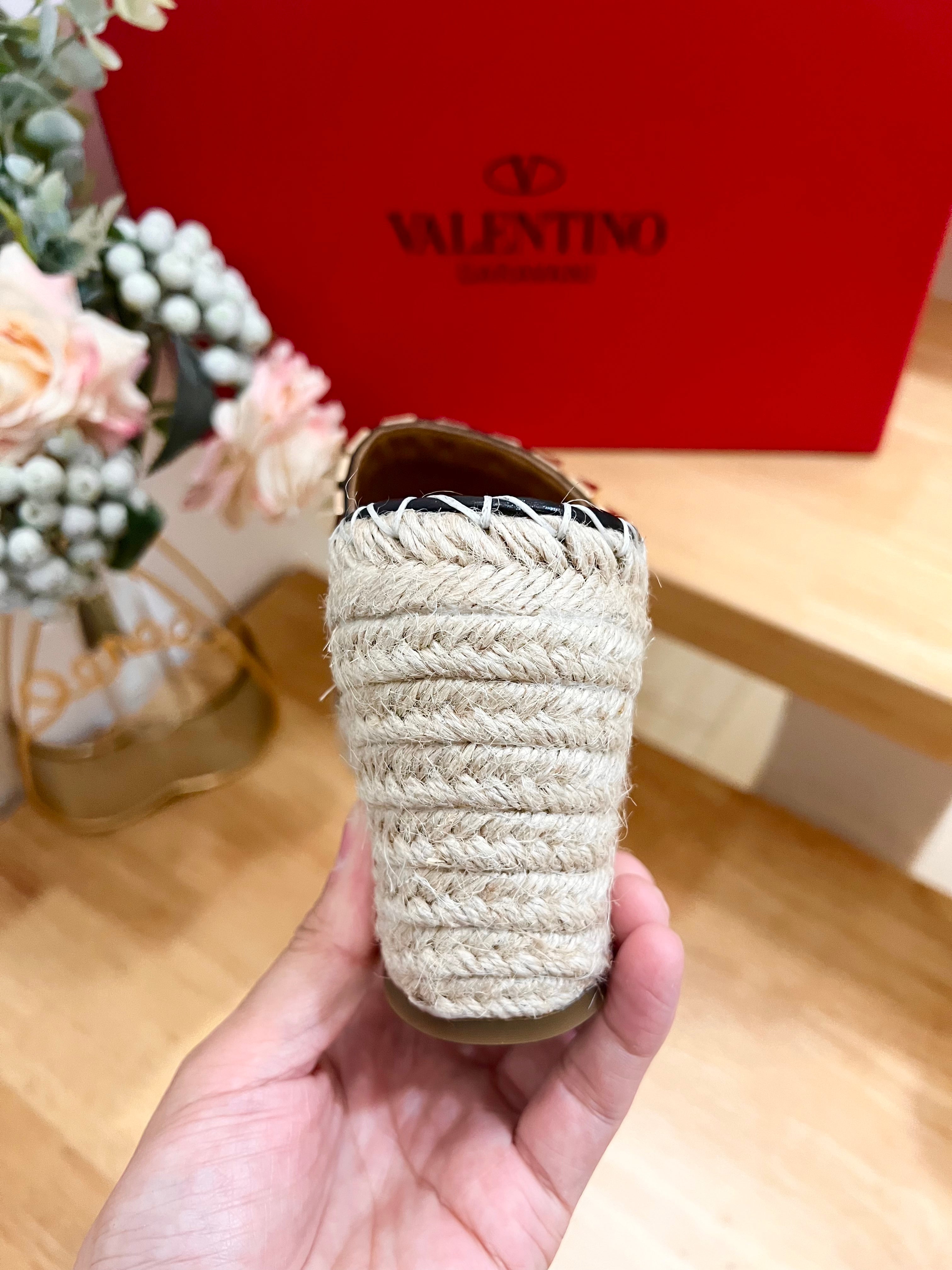 - Material: Leather with Rope-wrapped wedge heel
