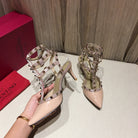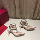 Valentino Rockstud Caged Pumps 65mm Nude Patent Leather 239635