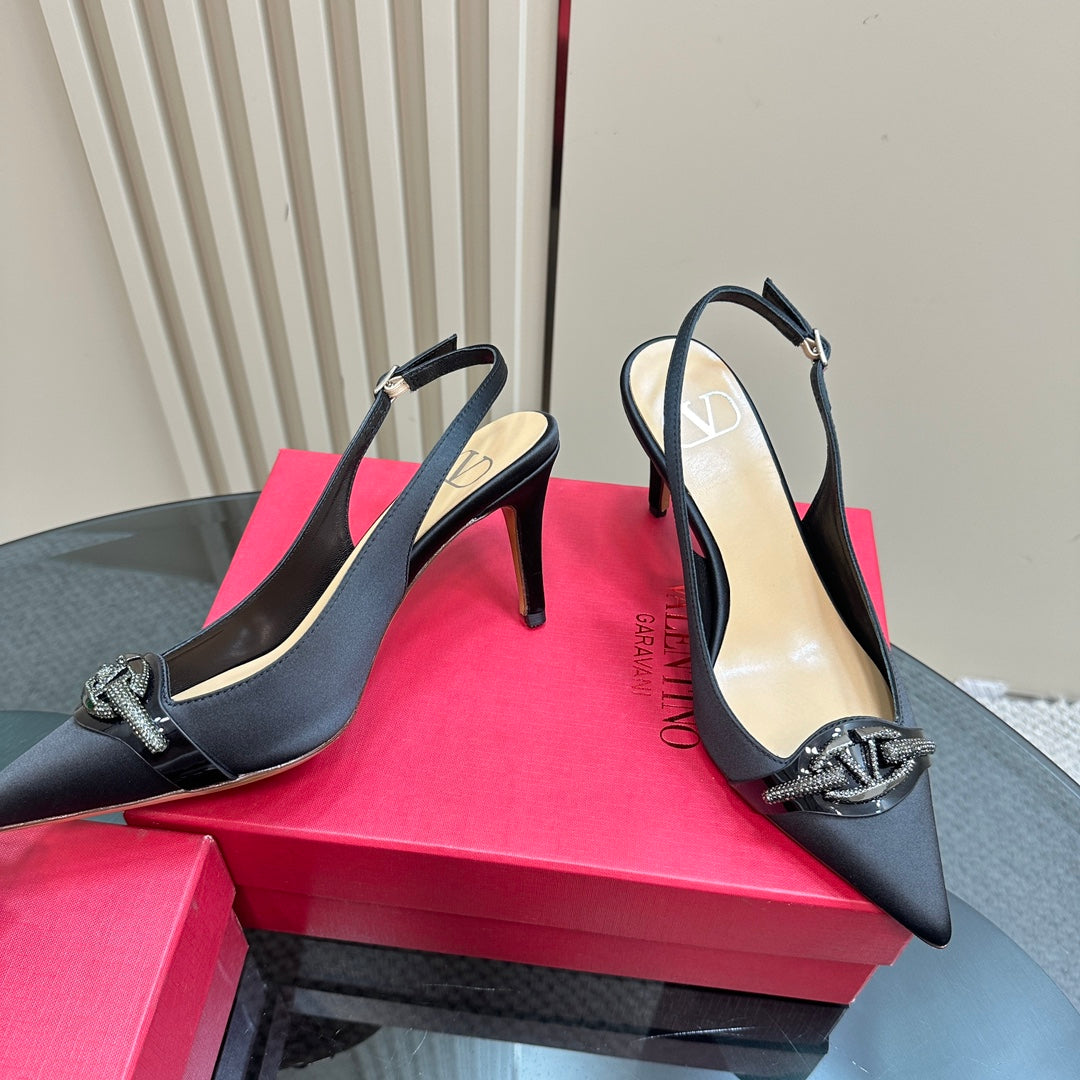 Valentino Slingback Pump 80mm In Black Mix Beige Lambskin 999019