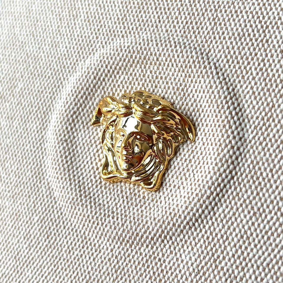 Versace Beige Denim Canvas Tote Bag 40 With Black Cowhide Handle 175561