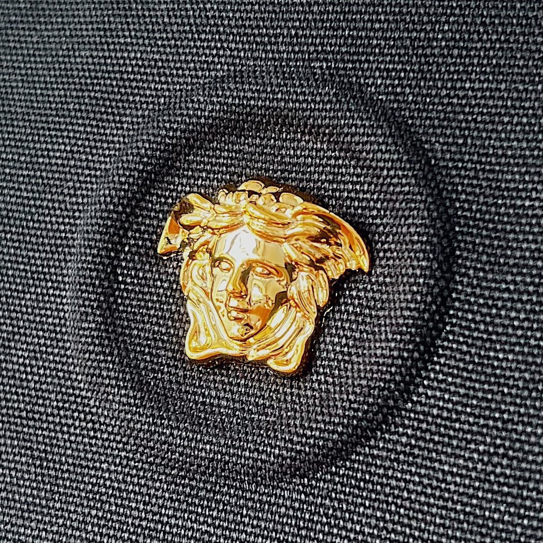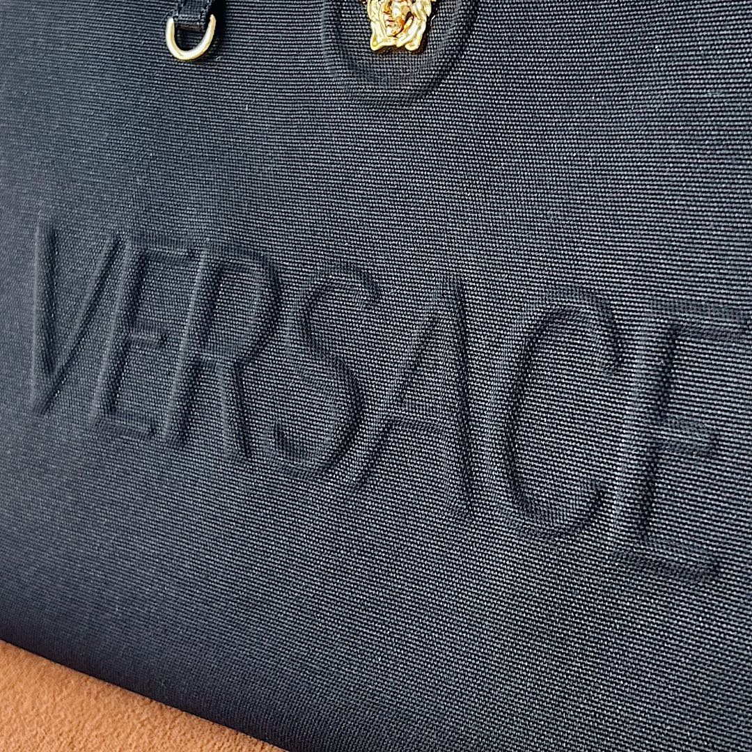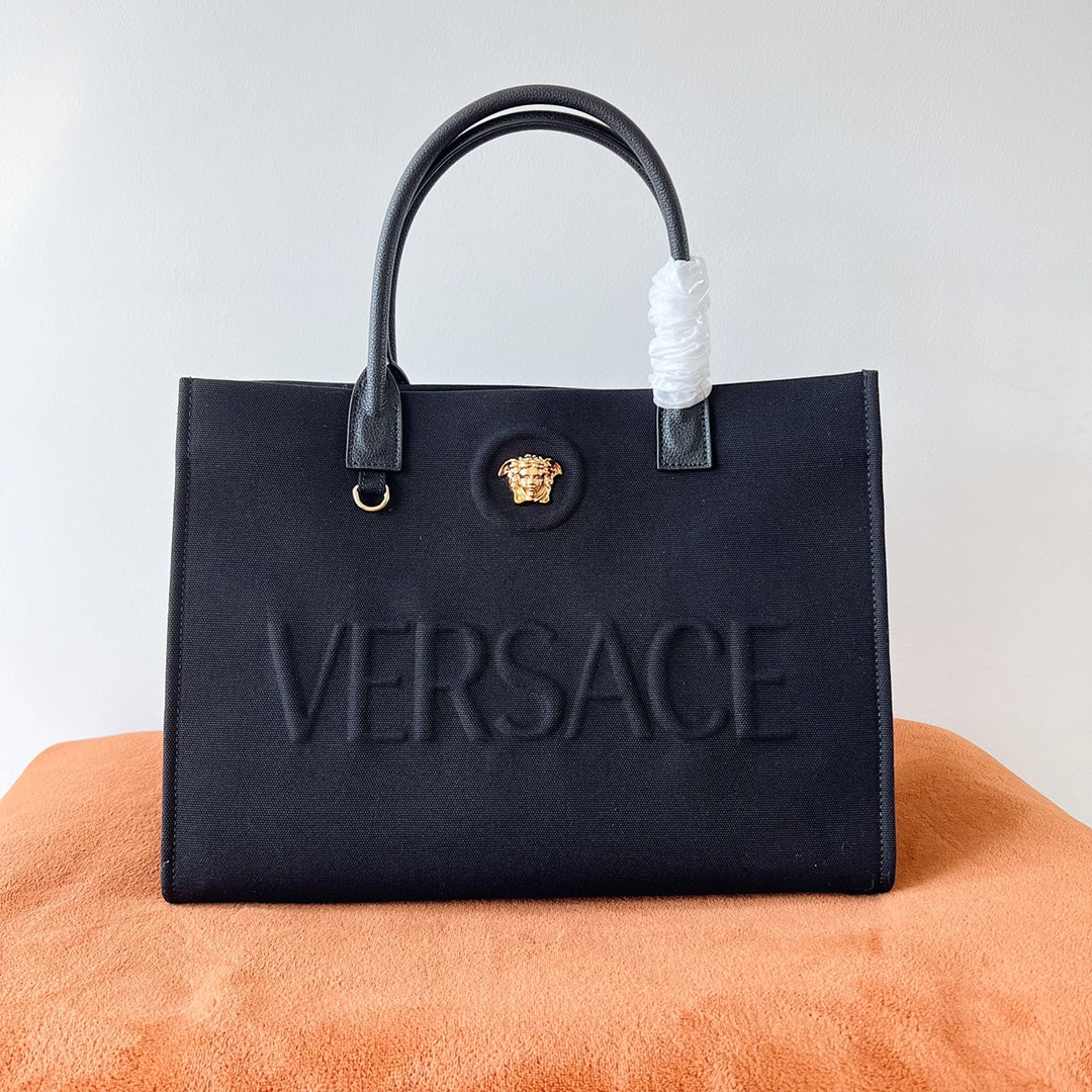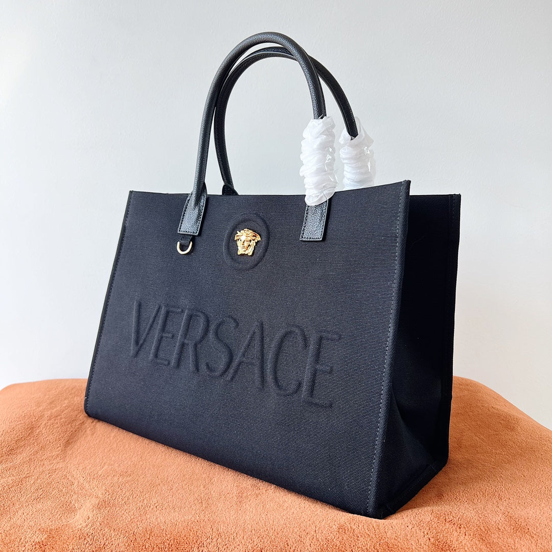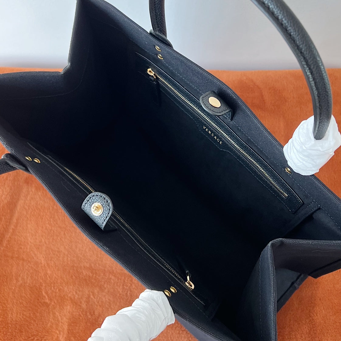 Versace Black Denim Canvas Tote Bag 40 With Cowhide Handle 175560