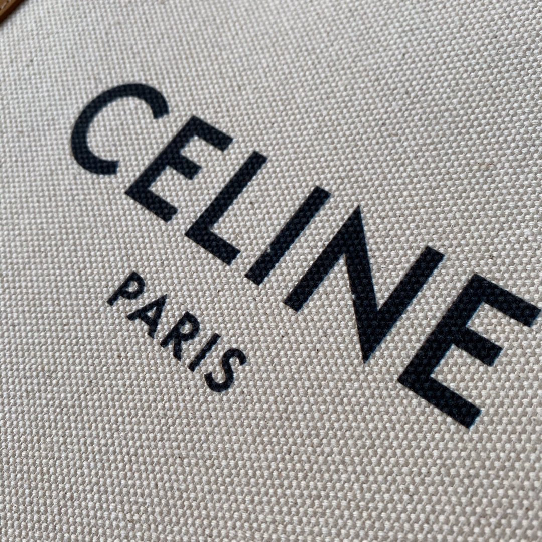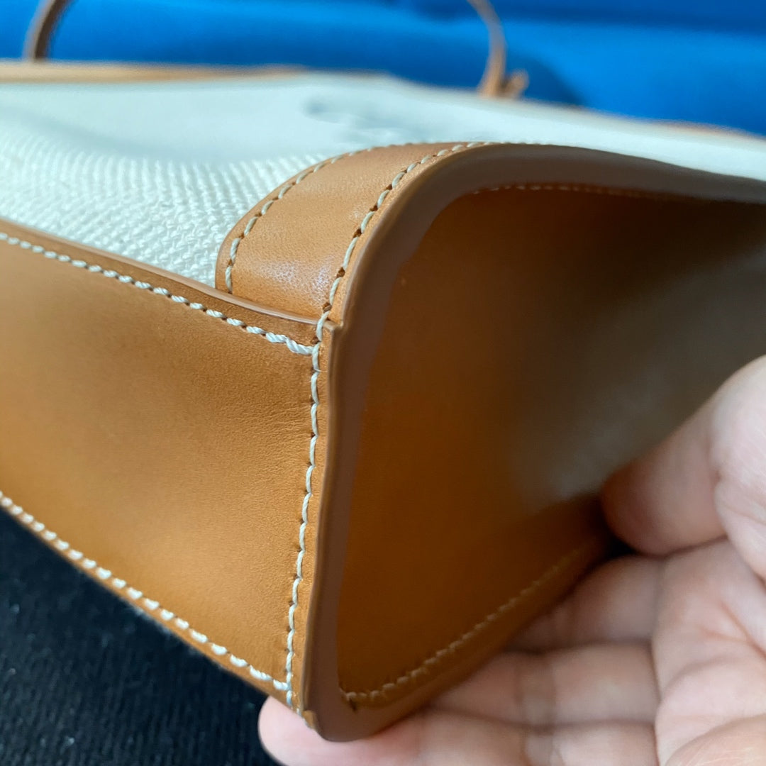 VERTICAL TOTE BAG 33 WHITE BROWN CANVAS AND CALFSKIN