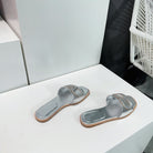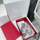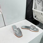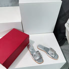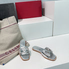 Vlogo Cut-Out Silver Calfskin Slide Sandal