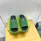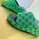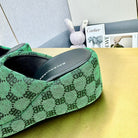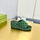 WEDGE SANDALS IN GREEN MONOGRAM JACQUARD FABRIC