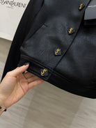 YSL 25 Short Jacket Black Acetic Acid Cracked Fabric