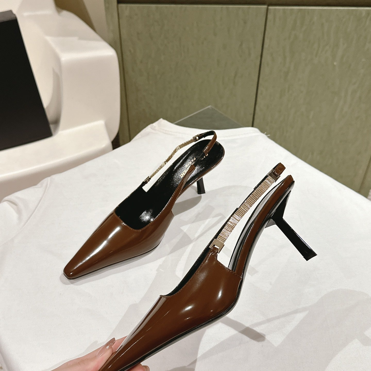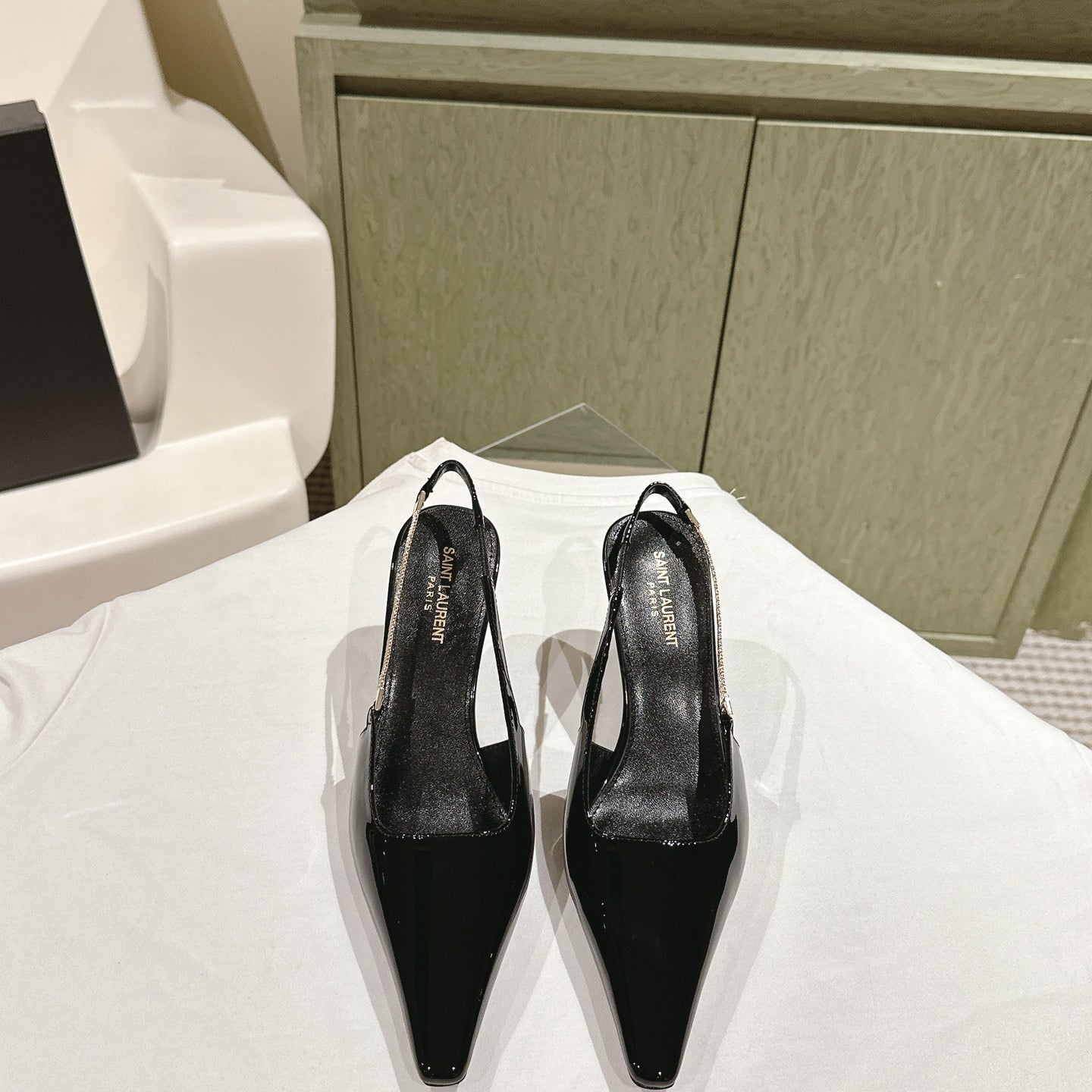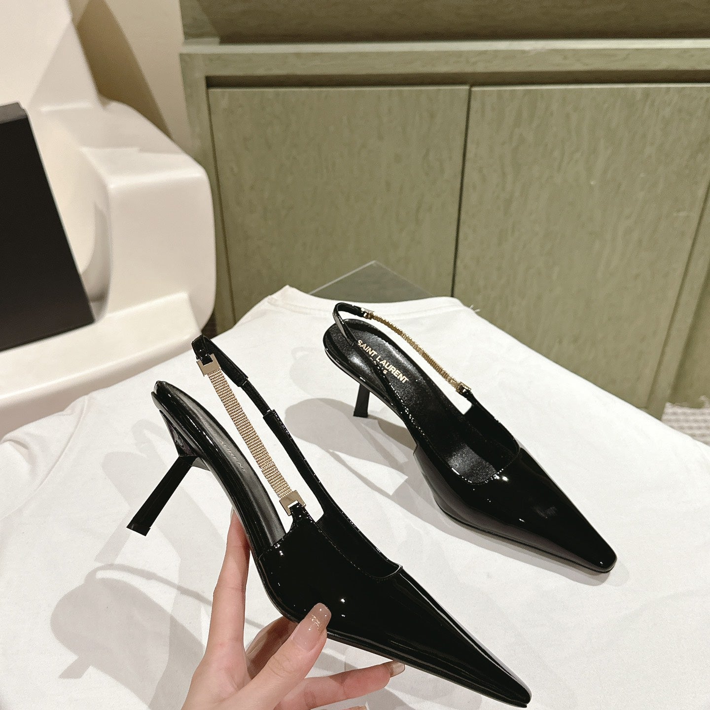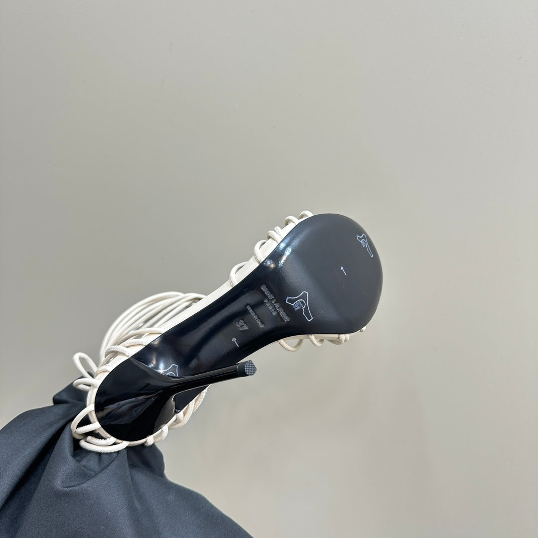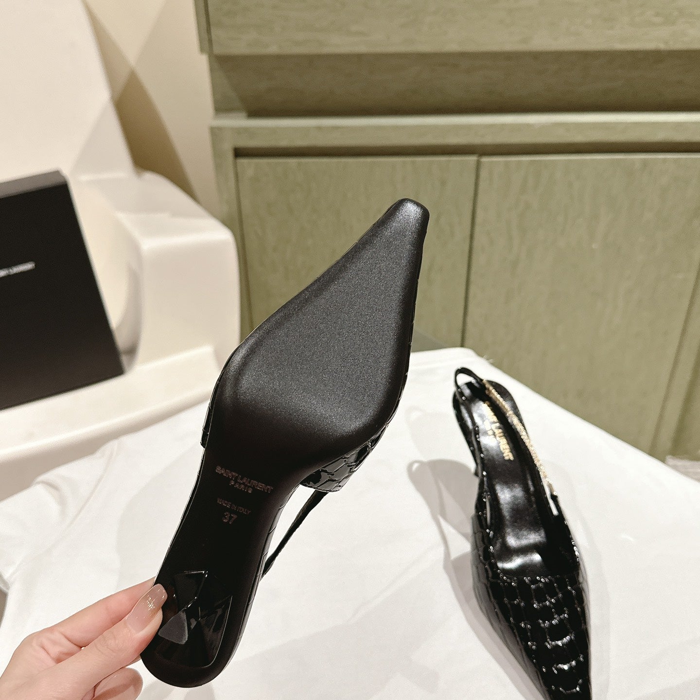 YSL Opyum Sandals Olive Green Fabric Leather
