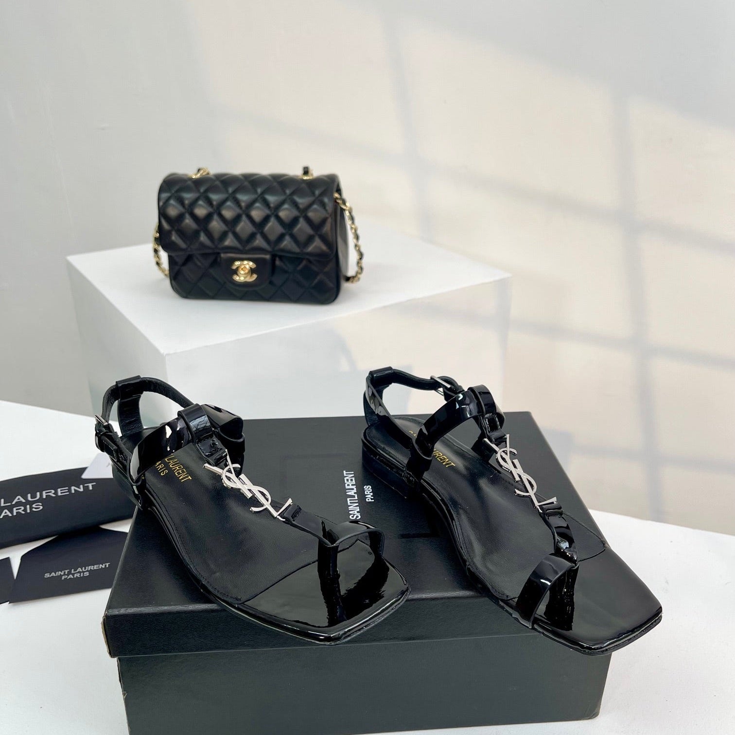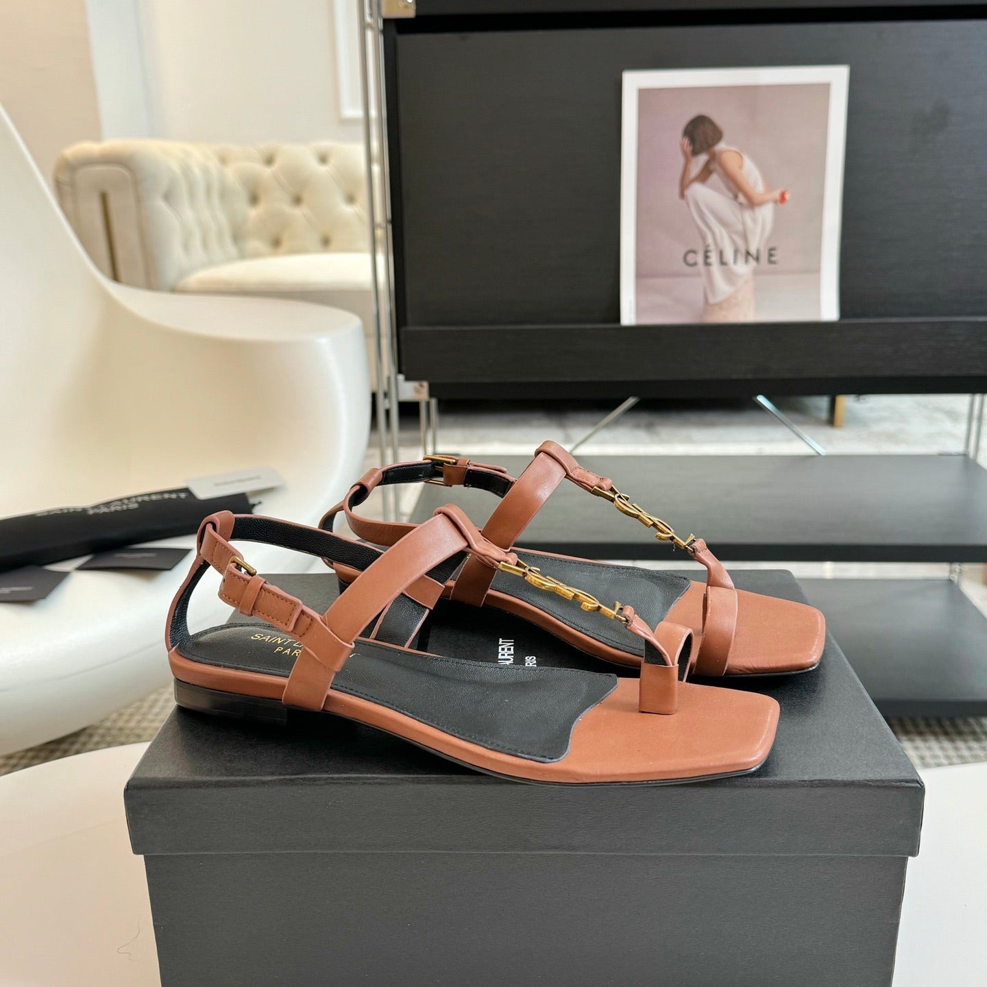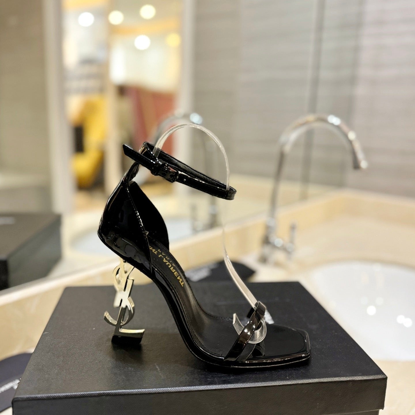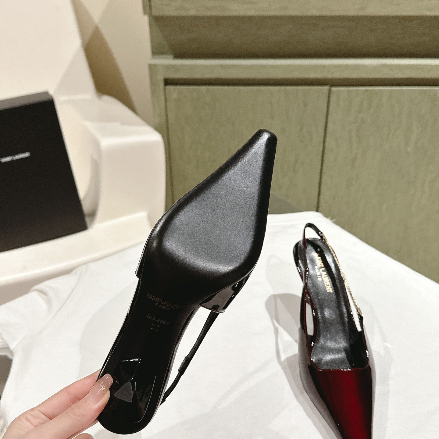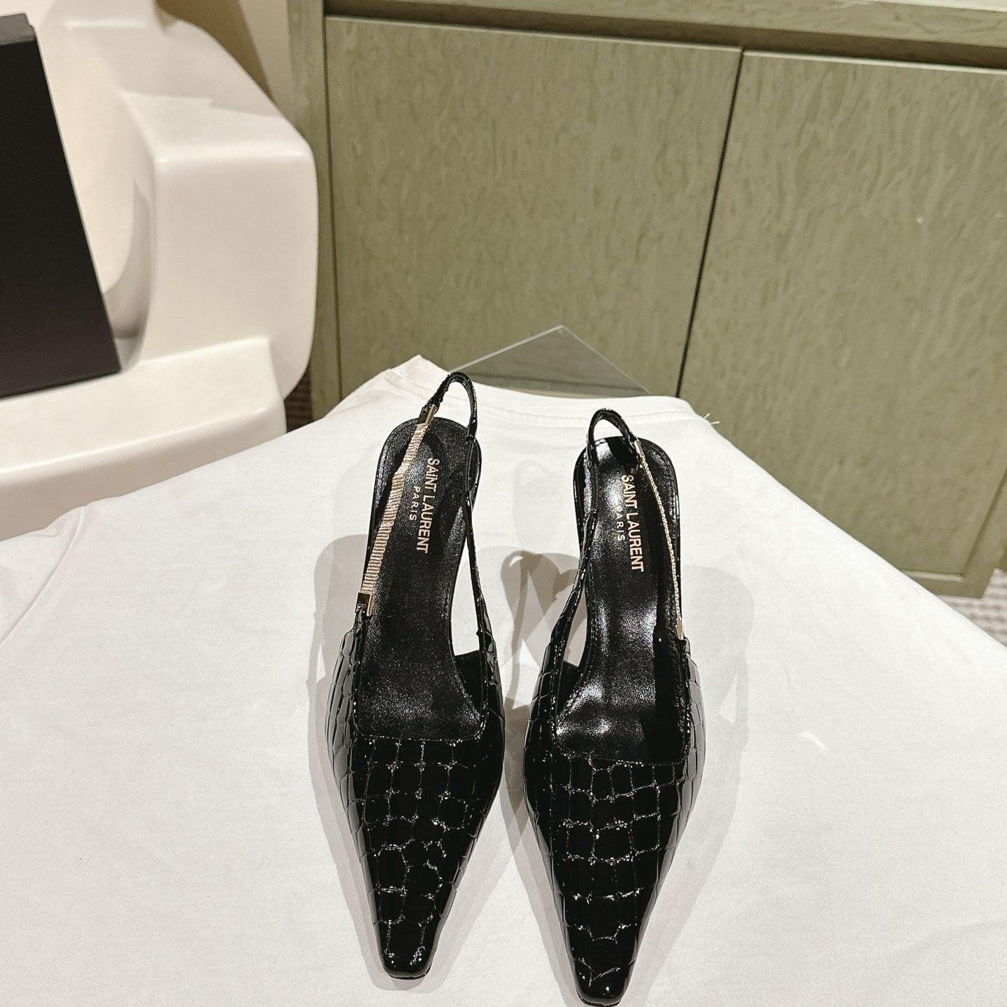YSL Opyum Sandals Olive Green Fabric Leather